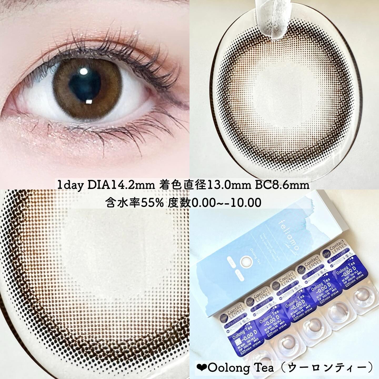 - ※2025年6月以降、商品パッケージ裏面・側面の一部表記を順次変更いたします。尚、これにかかる商品の交換・返品は承っておりません。 どんな瞬間にも溶け込む誰からも愛される瞳へ feliamoの由来は felice amore~幸せな愛~ 瞳から愛されオーラを放つ好印象レンズで女性らしさと品を演出。 オンも、オフも、特別な日も。 どんな場面にも溶け込むレンズラインナップで誰からも愛される瞳に。 UV CUT Feature1 肌や瞳に有害といわれ、白内障などの眼病を引き起こす危険性のある紫外線を99%カットします。(UV-A波75%、UV-B波99%カット) イオン性 Feature1 水分を多く含み酸素を通しやすいため瞳にやさしい使い心地で、快適な装用感です。 高含水 Feature1 水分が多く含むやわらかい素材で、快適なつけ心地です。 レンズ構造 Feature1 まぶた側に着色剤を内包しているため、角膜に色素が触れることがない構造を採用しています。 レンズ形状 Feature1 フチを丸みのある形状にすることで自然な装用感を実現しました。 ※装用感には個人差があります。 カラーコンタクトレンズの不適正使用による眼障害の危険性等などがあります。 ●コンタクトレンズは高度管理医療機器です。不十分な洗浄・消毒など不適切なケアや、長時間・交換期間を超えた装用により、アレルギー性結膜炎、角膜感染症、角膜潰瘍等の重篤な眼障害が発生する危険性があります ●ご使用前に取扱説明書を確認してください 使用上の留意事項 ●眼科医院等を受診してからお求めください ●眼に異常を感じたら直ちにレンズ使用を中止し、お近くの眼科等で診察を受けてください ●医師の指示にしたがってご使用ください ●コンタクトレンズを装用する場合、自覚症状がなくても、眼科医院等での定期検査を受けてください ●レンズに不具合がある場合は使用しないでください