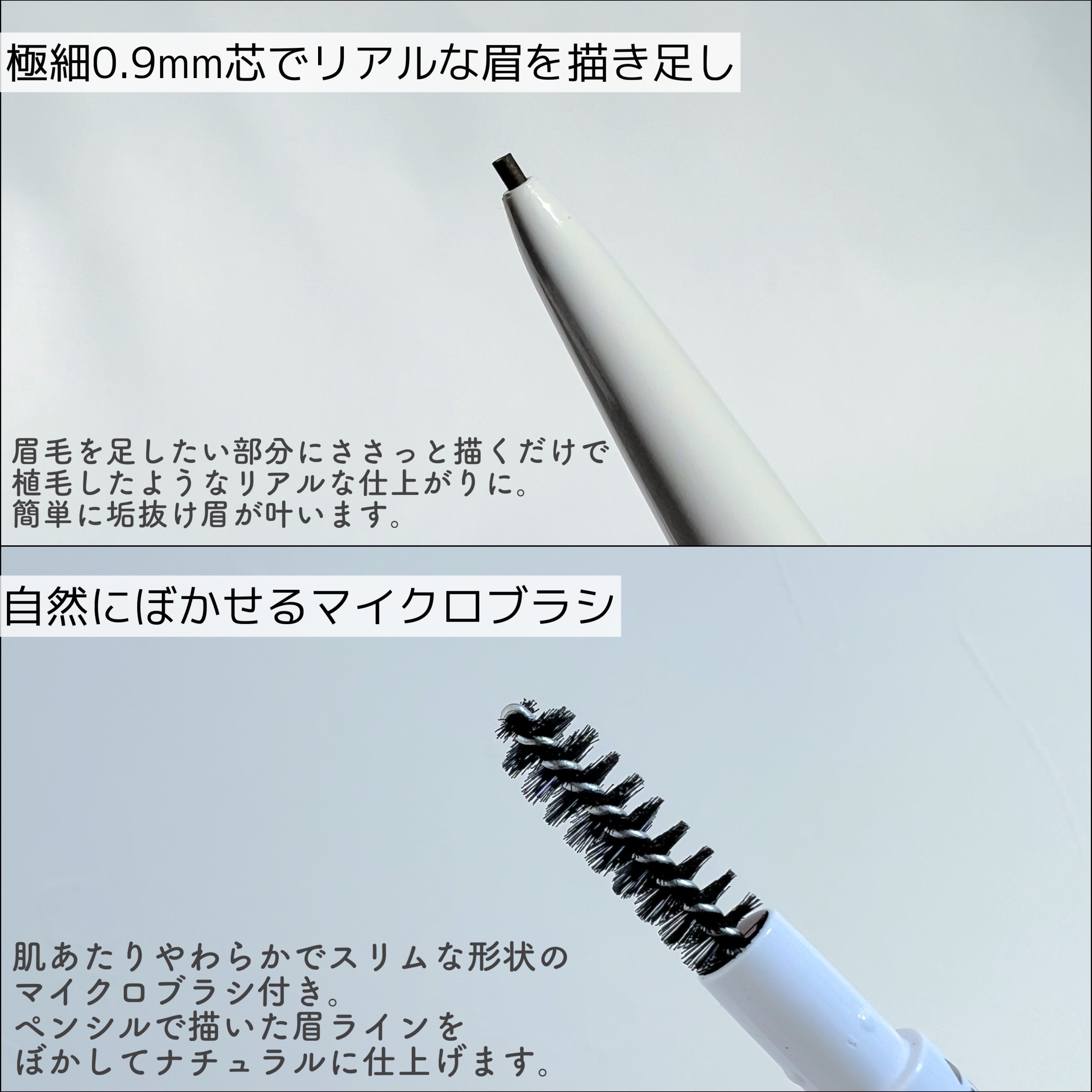 極細 0.9mm芯 反対面はマイクロブラシもついているの! 汗・水・皮脂に強いので落ちにくい✨ 24時間消えない、24時間耐久テストクリア! 芯がめちゃくちゃ細い!😳 これで眉毛を描き足すと、リアルな本物の眉毛が描けるし、垢抜ける!