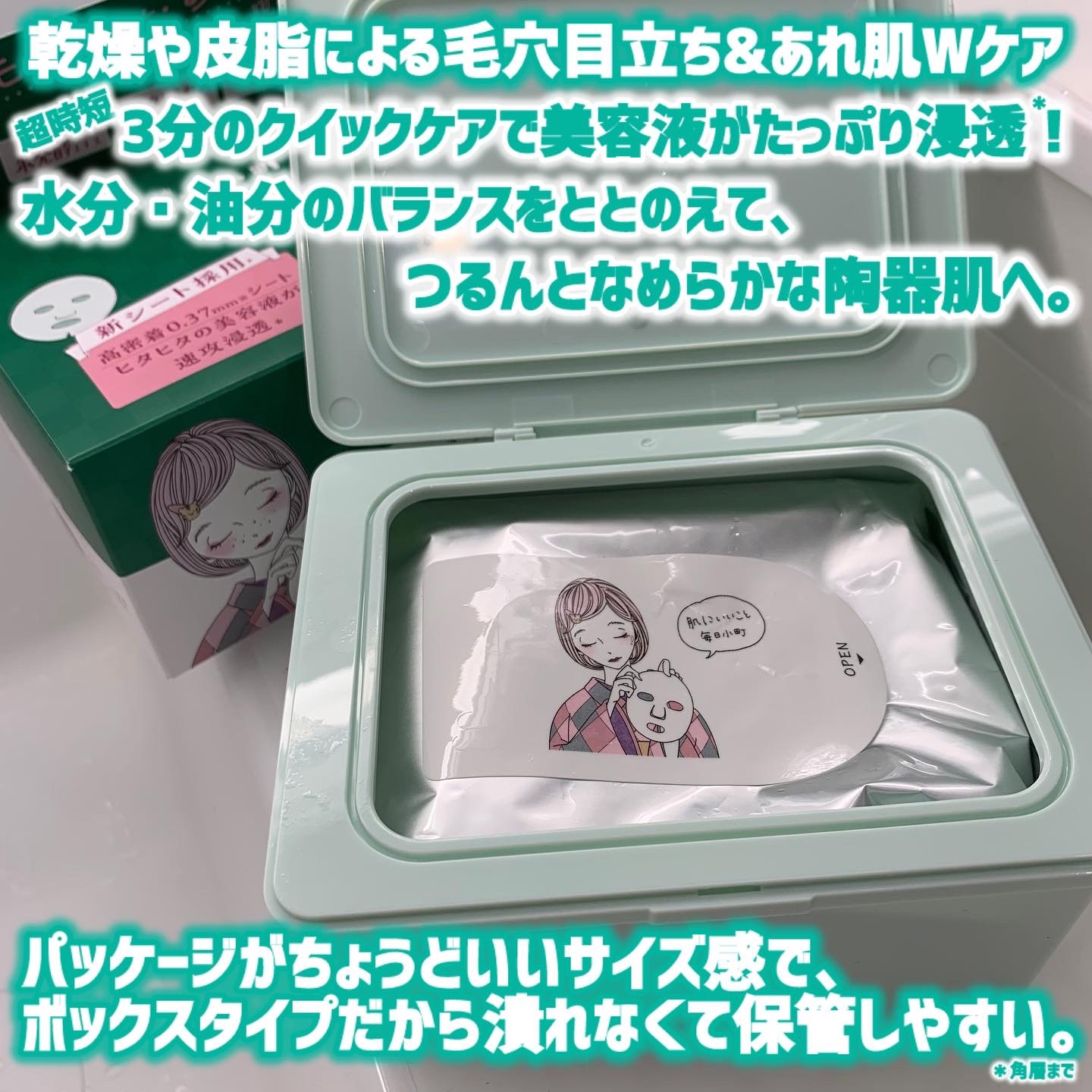 - 毎日の化粧水代わりに毛穴・あれ肌Wケアできる『まいにち毛穴小町マスク』 ①化粧水代わりのクイックケアで、毛穴・あれ肌Wケア たった3分のクイックケアで美容液がたっぷり浸透*✨ 水分・油分のバランスをととのえ、つるんとなめらかな陶器肌へみちびきます。 ②あれがちな肌にもやさしい使い心地 弱酸性・無着色・無鉱物油・パラベンフリー・紫外線吸収剤フリー・シリコーンフリー処方。やさしい使い心地です。 *角層まで