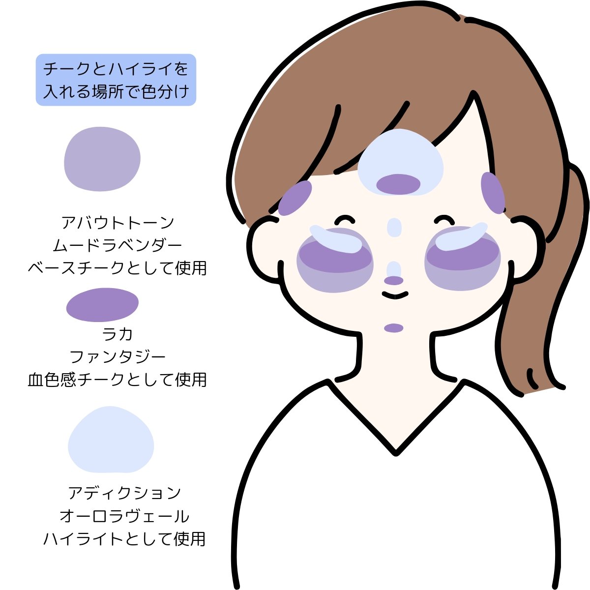この2つを重ねるとめちゃくちゃかわいい青みピンクになるよ💜 キャンメイク むにゅっとハイライター 04ブルートパーズ クリームチーク パールタイプ P05ペールライラック