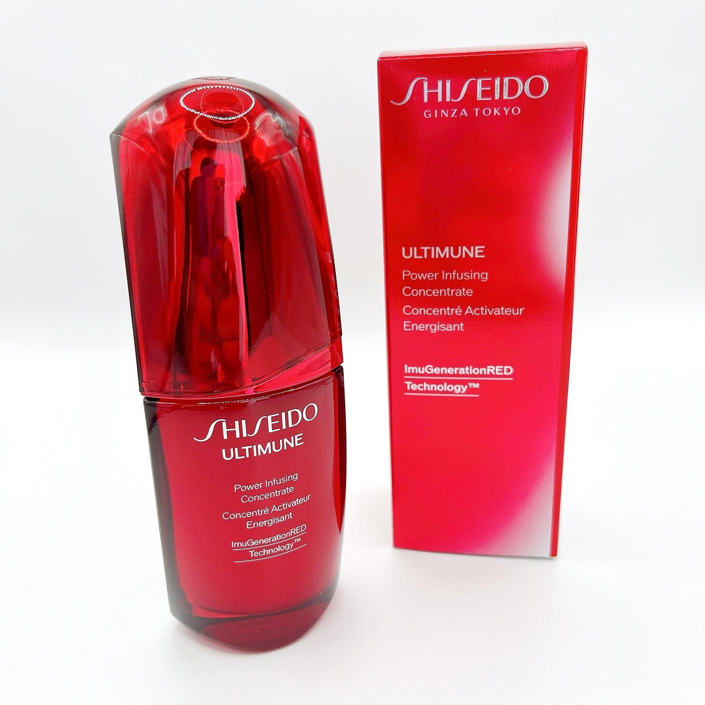 強さを巡らせ美しさを守り抜く SHISEIDOアルティミューン パワライジング コンセントレート IIIn❣️ 30ml・8800円(税込) 新たな独自技術”イミューリズム”(保湿成分エクトイン・グリセリン)を搭載。明るさ・ハリ・なめらかさが備わった、うるおいが湧き上がるような肌へ導いてくれるそう🎶 みずみずしいテクスチャーなのにしっとりした使用感が○ 香りはグリーンフローラル。優しく心地よい香りでとても気に入っています💚
