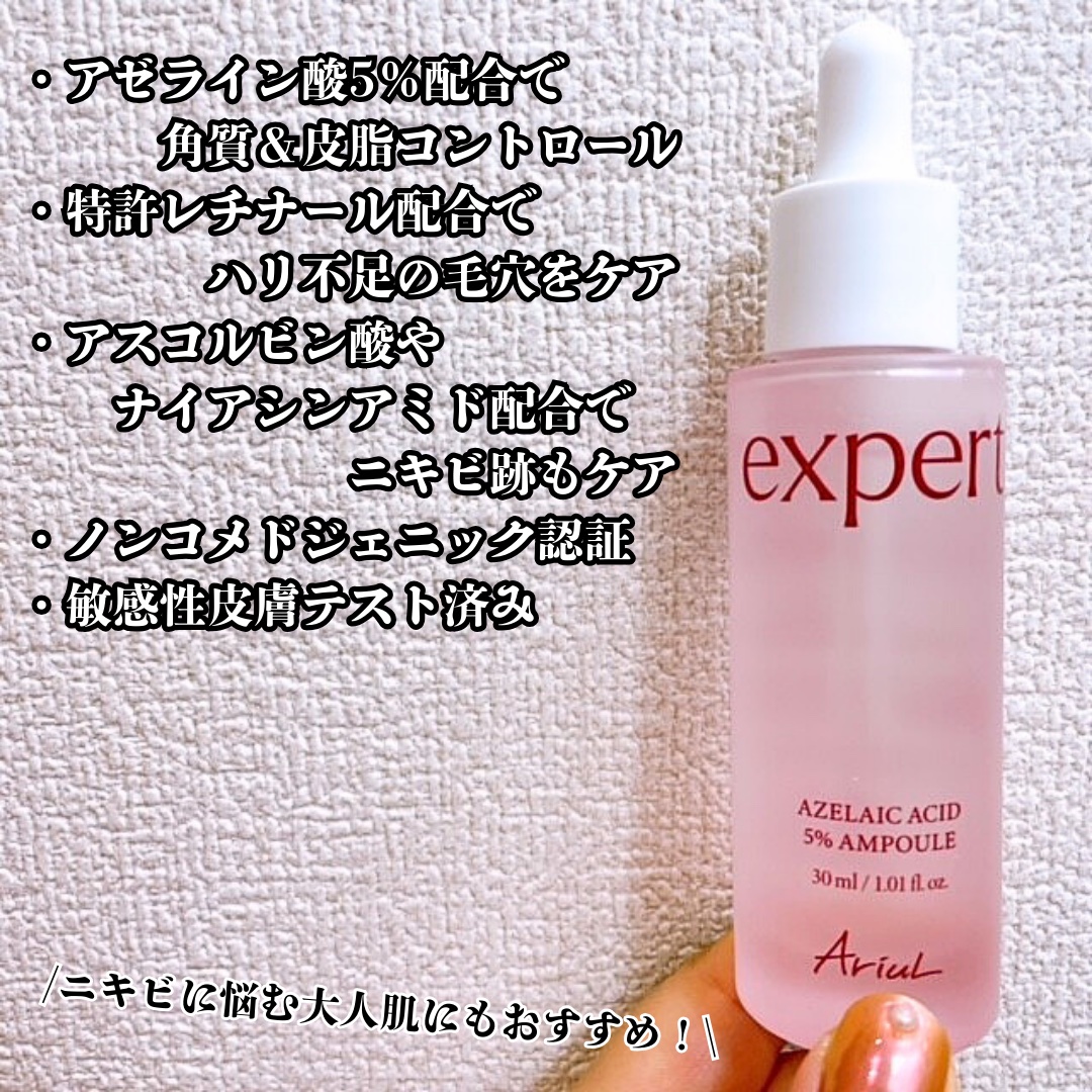 アゼライン酸5%の高含量❤️🔥 じーんと熱感アンプル! 話題の成分アゼライン酸が高含量配合されていて肌荒れやニキビケアにおすすめなアンプルです♡ 肌にのせた瞬間じーんと温かさを感じます❤️🔥この感覚はなかなかないので不思議でした。