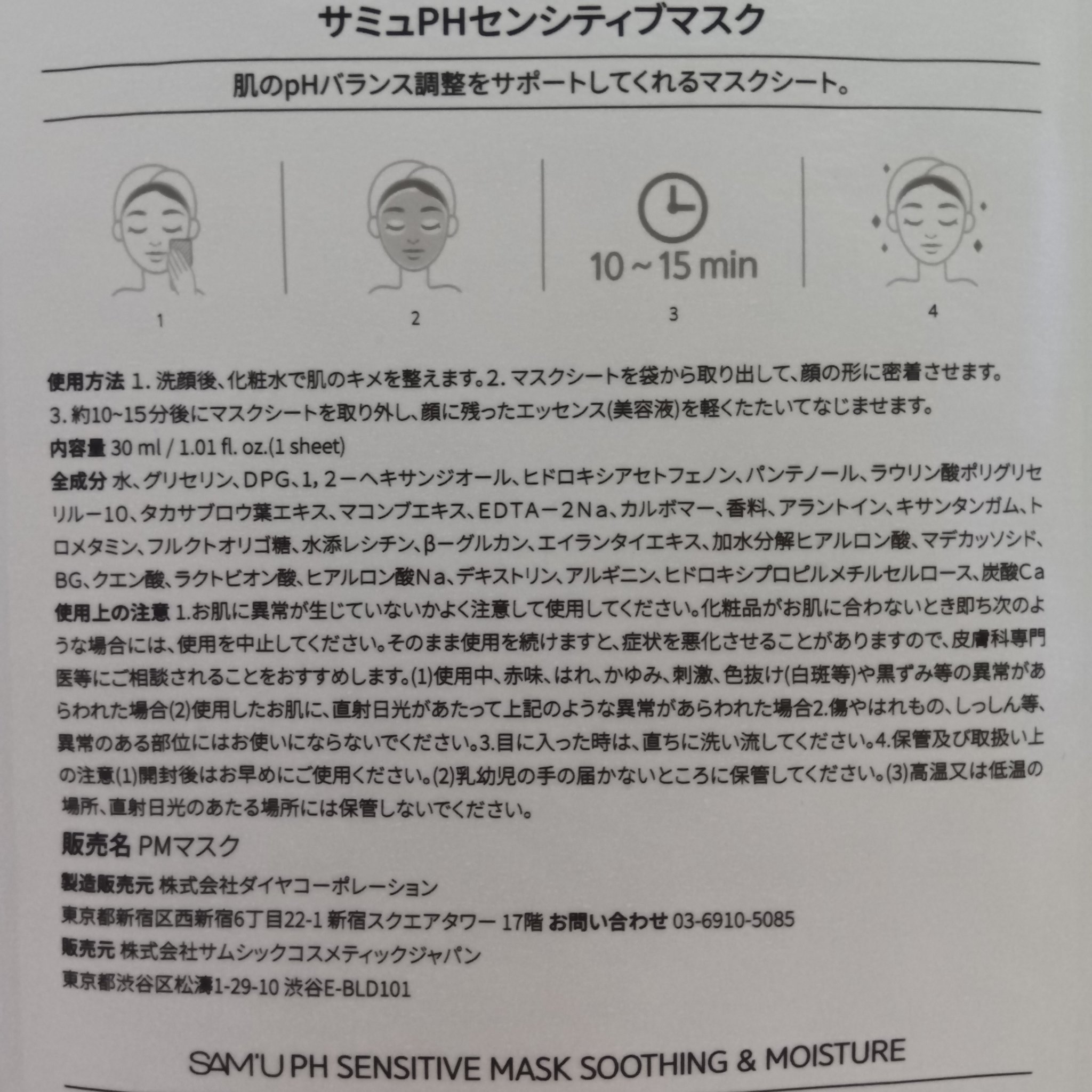 商品詳細情報SAM'U PHセンシティブマスクスージング&モイスト