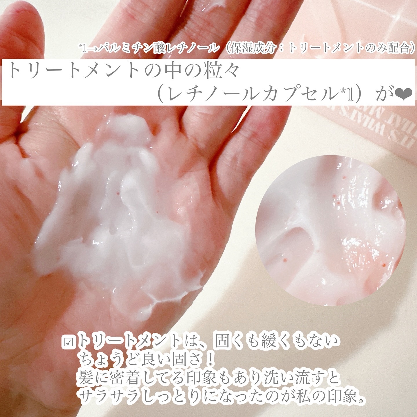 つるんと髪を手に入れたい方必見のアイテム! シャンプーは4種類のケラチンペプチド*と13種類のアミノ酸系成分***が入っていて、髪の毛を補修しながら潤い補給もしてくれるのˎˊ˗ 3分泡パックシャンプーっていう方法も超おすすめ❕ シャンプーを泡立てた後、目安3分放置するだけなんだけど髪内部までケアしてくれてる気がする🤍 ドライヤーやアイロンで傷んだ髪を内側までケアしてくれてありがたいの🫶🏻