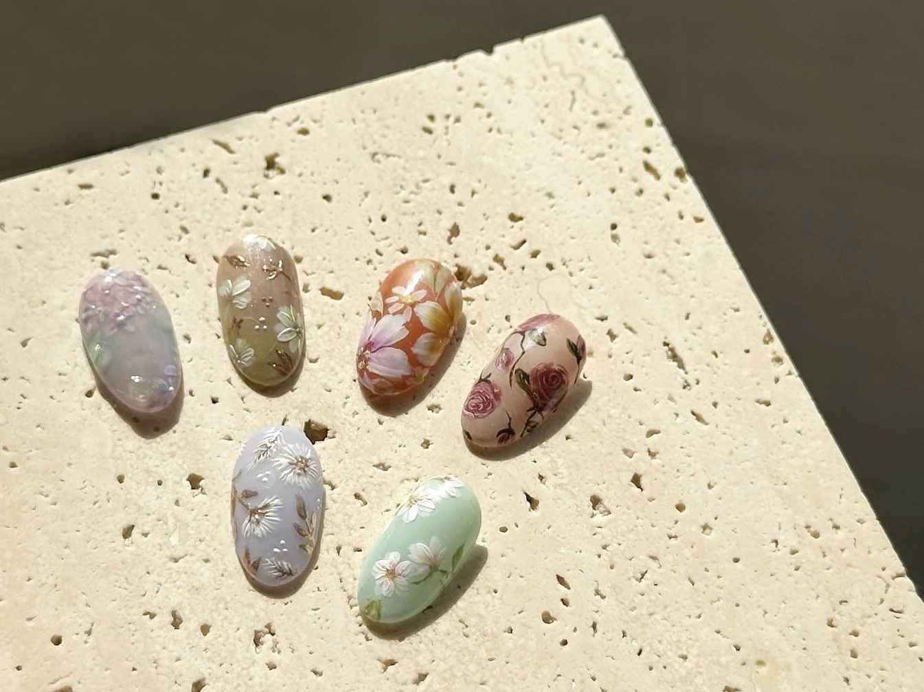 Flower art colourのwhiteを使用して描いたフラワー☺️ Earth Clear colorで花びらを色付けした奥行き感のあるフラワーデザイン💐 POPUPの体験ブースは事前予約が必要となります🧎🏻♀️