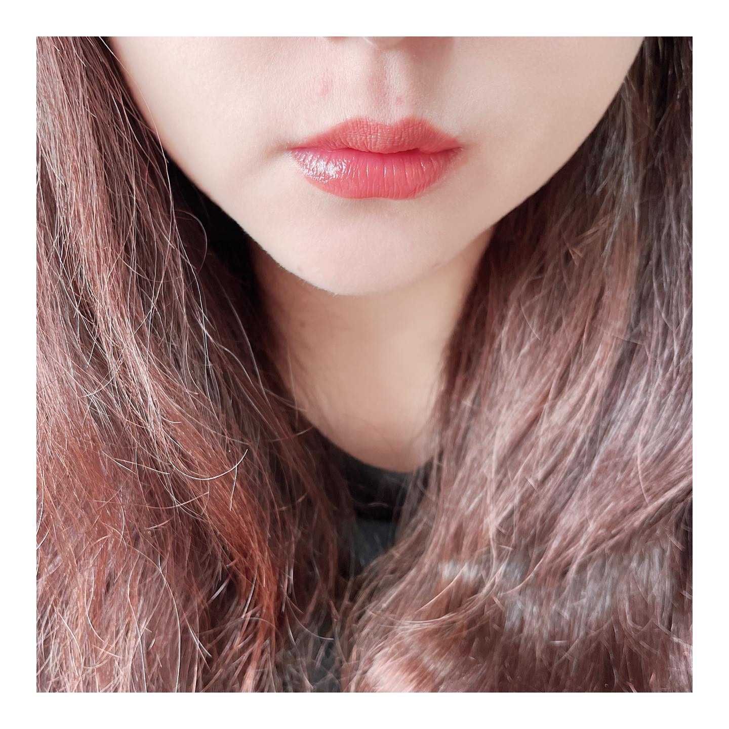 プランプ効果✖️ツヤ✖️濃厚保湿✖️とろけて高発色✖️ティント効果の5つの効果でぷっくり唇が持続してくれるんだそう。 唇にのせて滑らせるとすごくとろける感覚でとっても塗りやすいです。 011 センチなうるみピンクは、濃い夕焼けオレンジと空色が混ざった大人なピンク。