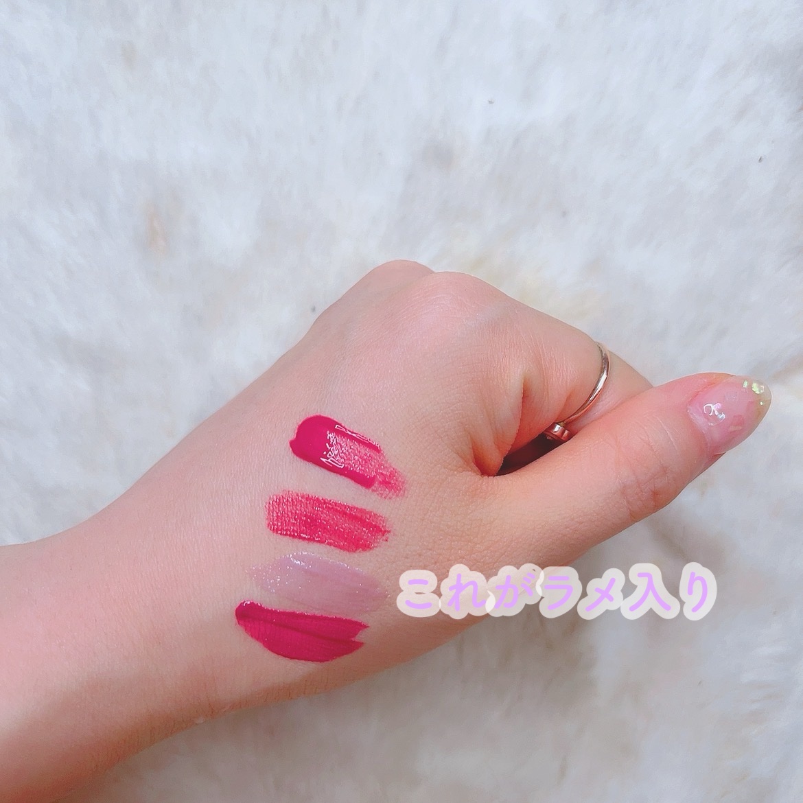 - <02 夜遊びコーラル> 水、ジメチコン、イソドデカン、トリメチルシロキシケイ酸、ジフェニルシロキシフェニルトリメチコン、グリセリン、ポリソルベート60、エタノール、ヒアルロン酸Na、カミツレ花エキス、水溶性コラーゲン、ポリアクリレートクロスポリマー-6、フェノキシエタノール、BG、クエン酸Na、クエン酸、シリカ、ポリクオタニウム-7、酸化チタン、酸化鉄、アルミナ、黄5、赤227、青1 <03 惑星ロマンス> 水、ジメチコン、イソドデカン、トリメチルシロキシケイ酸、ジフェニルシロキシフェニルトリメチコン、グリセリン、ポリソルベート60、エタノール、ヒアルロン酸Na、カミツレ花エキス、水溶性コラーゲン、ポリアクリレートクロスポリマー-6、フェノキシエタノール、BG、クエン酸Na、クエン酸、シリカ、ポリクオタニウム-7、酸化チタン、アルミナ、黄5、赤227、青1 <07 甘噛みプラム> 水、ジメチコン、イソドデカン、トリメチルシロキシケイ酸、ジフェニルシロキシフェニルトリメチコン、グリセリン、ポリソルベート60、エタノール、ヒアルロン酸Na、カミツレ花エキス、水溶性コラーゲン、ポリアクリレートクロスポリマー-6、フェノキシエタノール、1,2-ヘキサンジオール、カプリリルグリコール、クエン酸Na、BG、クエン酸、ポリクオタニウム-7、酸化鉄、赤227、黄5、青1 <08 肉球アプリコット> 水、ジメチコン、イソドデカン、トリメチルシロキシケイ酸、ジフェニルシロキシフェニルトリメチコン、グリセリン、ポリソルベート60、エタノール、ヒアルロン酸Na、カミツレ花エキス、水溶性コラーゲン、ポリアクリレートクロスポリマー-6、フェノキシエタノール、1,2-ヘキサンジオール、カプリリルグリコール、クエン酸Na、BG、クエン酸、シリカ、ポリクオタニウム-7、酸化チタン、アルミナ、黄5、赤227、青1 <09 フレンチロココ> 水、ジメチコン、イソドデカン、トリメチルシロキシケイ酸、ジフェニルシロキシフェニルトリメチコン、グリセリン、ポリソルベート60、エタノール、ヒアルロン酸Na、カミツレ花エキス、水溶性コラーゲン、ポリアクリレートクロスポリマー-6、フェノキシエタノール、BG、1,2-ヘキサンジオール、カプリリルグリコール、クエン酸Na、クエン酸、シリカ、ポリクオタニウム-7、酸化チタン、酸化鉄、アルミナ、黄5、赤227、青1 <10 さくらんぼホリック> 水、ジメチコン、イソドデカン、トリメチルシロキシケイ酸、ジフェニルシロキシフェニルトリメチコン、グリセリン、ポリソルベート60、エタノール、ヒアルロン酸Na、カミツレ花エキス、水溶性コラーゲン、ポリアクリレートクロスポリマー-6、フェノキシエタノール、ペンチレングリコール、1,2-ヘキサンジオール、カプリリルグリコール、クエン酸Na、BG、クエン酸、シリカ、ポリクオタニウム-7、酸化チタン、アルミナ、赤227、黄5、青1 <11 強敵フローズンモーヴ> 水、ジメチコン、イソドデカン、トリメチルシロキシケイ酸、ジフェニルシロキシフェニルトリメチコン、グリセリン、ポリソルベート60、エタノール、ヒアルロン酸Na、カミツレ花エキス、水溶性コラーゲン、ポリアクリレートクロスポリマー-6、フェノキシエタノール、ペンチレングリコール、BG、1,2-ヘキサンジオール、カプリリルグリコール、クエン酸Na、クエン酸、シリカ、ポリクオタニウム-7、ホウケイ酸(Ca/Al)、酸化チタン、酸化鉄、アルミナ、酸化スズ、赤227、黄5 <12 ディープベリー流星群> 水、ジメチコン、イソドデカン、トリメチルシロキシケイ酸、ジフェニルシロキシフェニルトリメチコン、グリセリン、ポリソルベート60、エタノール、ヒアルロン酸Na、カミツレ花エキス、水溶性コラーゲン、ポリアクリレートクロスポリマー-6、フェノキシエタノール、ペンチレングリコール、1,2-ヘキサンジオール、カプリリルグリコール、クエン酸Na、BG、クエン酸、シリカ、ポリクオタニウム-7、ホウケイ酸(Ca/Al)、酸化チタン、酸化鉄、アルミナ、酸化スズ、赤227、黄5、青1 <13 おひめスプリング> 水、ジメチコン、イソドデカン、トリメチルシロキシケイ酸、ジフェニルシロキシフェニルトリメチコン、グリセリン、ポリソルベート60、エタノール、ヒアルロン酸Na、カミツレ花エキス、水溶性コラーゲン、ポリアクリレートクロスポリマー-6、フェノキシエタノール、ペンチレングリコール、1,2-ヘキサンジオール、カプリリルグリコール、クエン酸Na、BG、クエン酸、シリカ、ポリクオタニウム-7、ホウケイ酸(Ca/Al)、酸化チタン、酸化鉄、アルミナ、酸化スズ、黄5、赤227、青1 <14 いちご飴紅茶> 水、ジメチコン、イソドデカン、トリメチルシロキシケイ酸、ジフェニルシロキシフェニルトリメチコン、グリセリン、ポリソルベート60、エタノール、ヒアルロン酸Na、カミツレ花エキス、水溶性コラーゲン、ポリアクリレートクロスポリマー-6、フェノキシエタノール、ペンチレングリコール、1,2-ヘキサンジオール、カプリリルグリコール、クエン酸Na、BG、クエン酸、シ