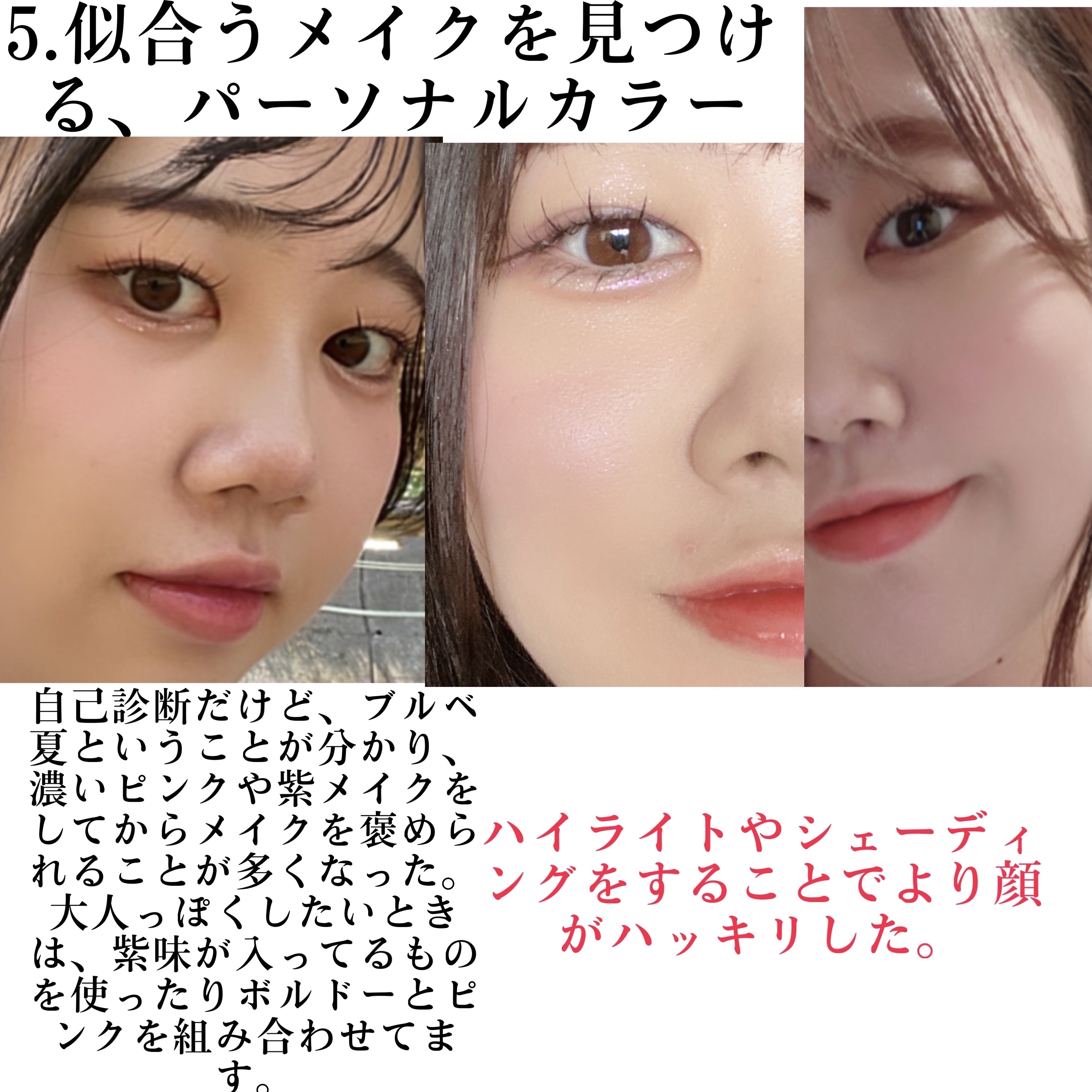 髪色や長さをシュミレーションできるアプリがあるので使ってみるといいかもしれません👍👍 眉毛サロンで整えてから、とても眉メイクがしやすくなりました! アイメイクを沢山勉強しました!部分用つけまをつけたり、涙袋コンシーラーをしたら写真盛れするようになりました😭😭