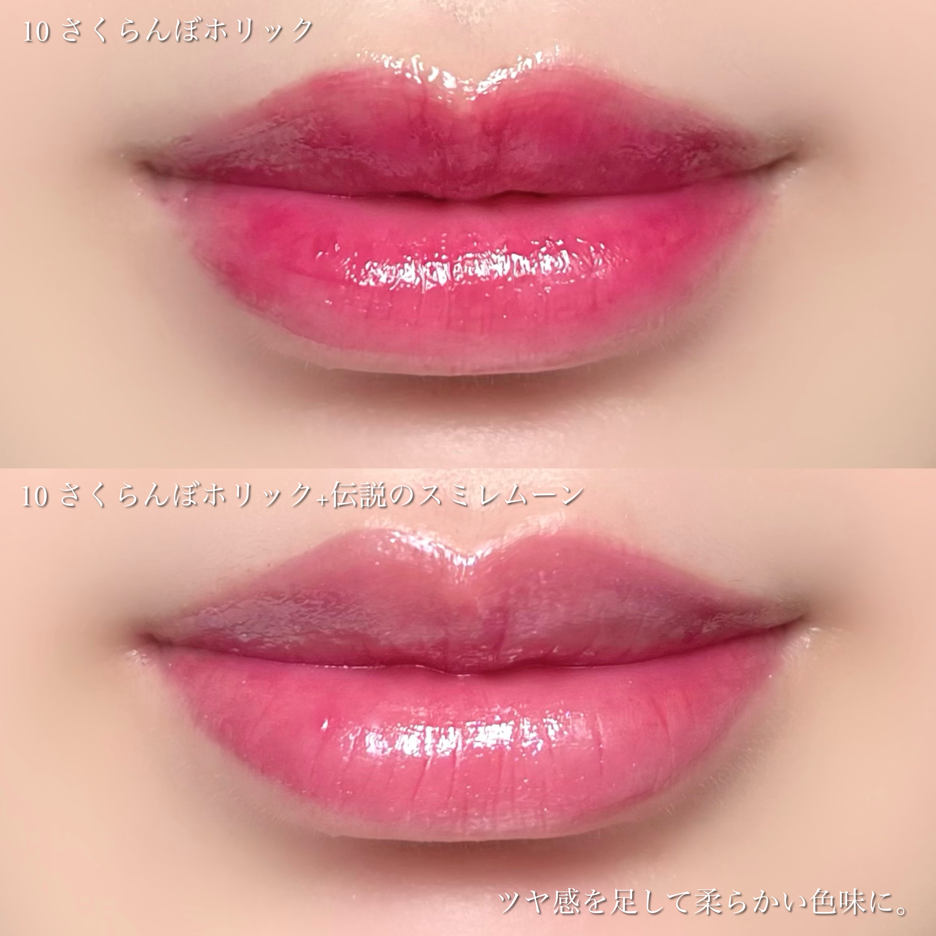 | 指で軽く触るとジェル膜を感じられますし、ツヤツヤぷるぷるのリップに仕上がります! | 詳細を見る | ||