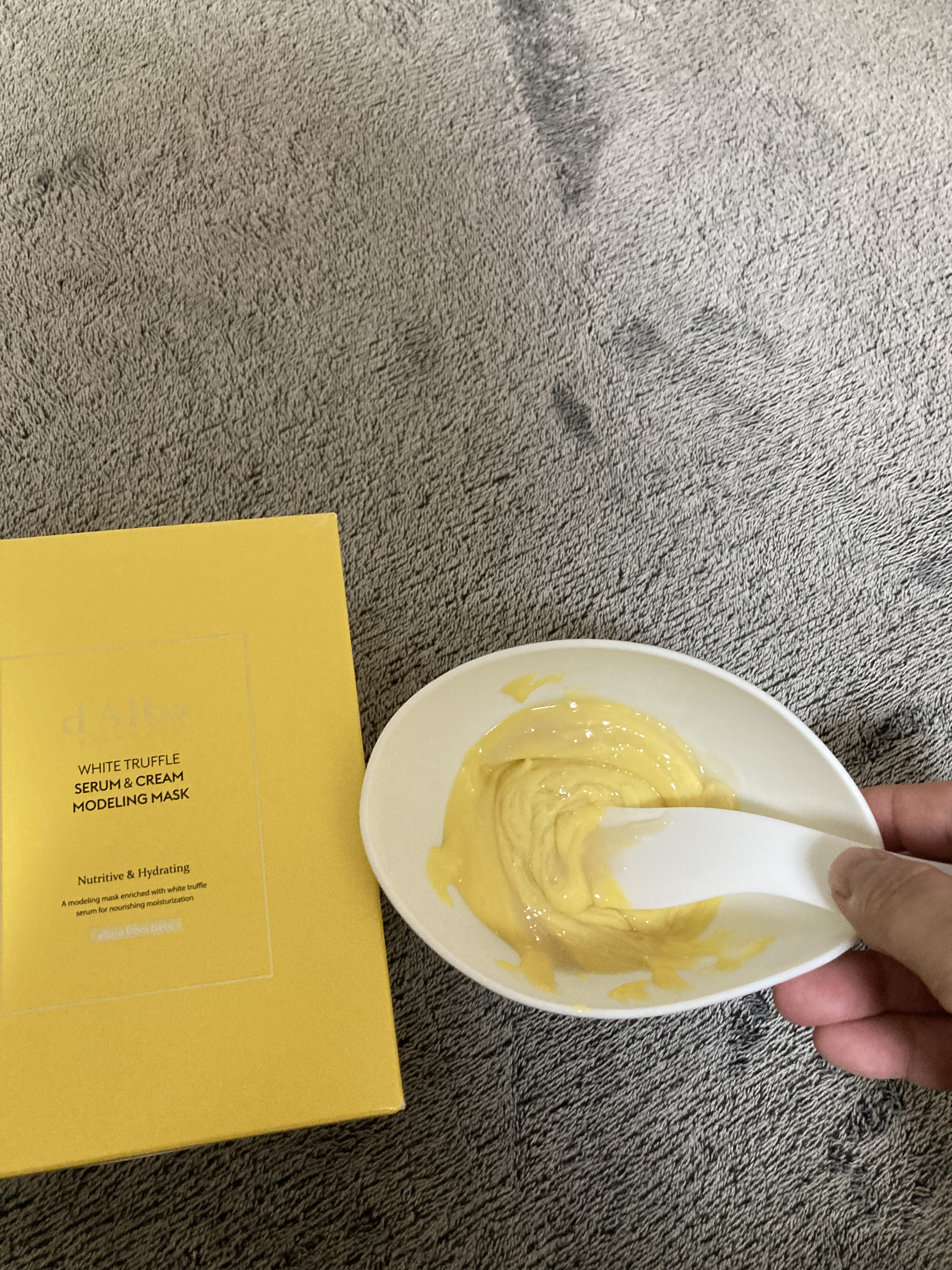 シートパックをすることが多いので、ペーストを作って使うマスクは新鮮な体験です! こちらは1剤2剤を混ぜます。クリームの様な柔らかいテクスチャーで肌にのせても落っこちない程ぽってりとしています。 不要な角質と老廃物を吸着し水分を肌に届けてくれるらしくモチモチしています。 香りは爽やかな柑橘系ですごく好みでした! 癒されるパックタイムでした!