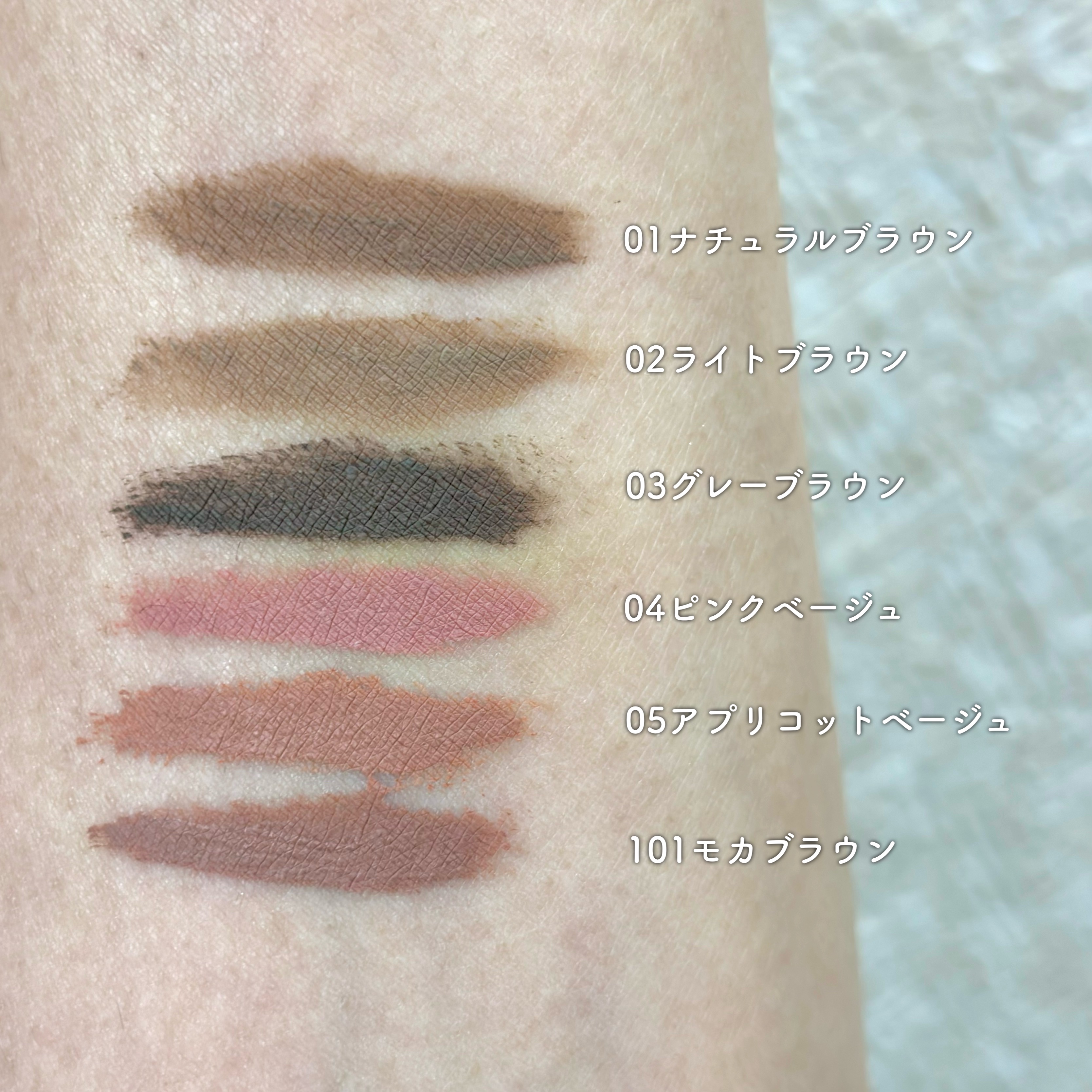- <b idol 限定カラー 脱色ベージュ> イソドデカン、タルク、トリメチルシロキシケイ酸、合成ワックス、酸化チタン、酸化鉄、ジステアルジモニウムヘクトライト、水添ポリイソブテン、炭酸プロピレン、(パルミチン酸/エチルヘキサン酸)デキストリン、ミリスチン酸Al、トリエトキシカプリリルシラン、水酸化Al、エチルヘキシルグリセリン、ツバキ種子油、アルガニアスピノサ核油、アンズ核油、アボカド油、トリ(カプリル酸/カプリン酸)グリセリル、水、BG、カニナバラ果実エキス、1,2- ヘキサンジオール、ダイズ種子エキス <01 ナチュラルブラウン> イソドデカン、タルク、トリメチルシロキシケイ酸、酸化鉄、合成ワックス、酸化チタン、ジステアルジモニウムヘクトライト、水添ポリイソブテン、炭酸プロピレン、(パルミチン酸/エチルヘキサン酸)デキストリン、ポリプロピルシルセスキオキサン、ミリスチン酸Al、トリエトキシカプリリルシラン、エチルヘキシルグリセリン、水酸化Al、水、アンズ核油、アルガニアスピノサ核油、トリ(カプリル酸/カプリン酸)グリセリル、ツバキ種子油、BG、ハチミツエキス、1,2-ヘキサンジオール、カニナバラ果実油、ダイズ種子エキス <02 ライトブラウン> イソドデカン、タルク、トリメチルシロキシケイ酸、合成ワックス、酸化鉄、酸化チタン、ジステアルジモニウムヘクトライト、水添ポリイソブテン、炭酸プロピレン、(パルミチン酸/エチルヘキサン酸)デキストリン、ポリプロピルシルセスキオキサン、ミリスチン酸Al、トリエトキシカプリリルシラン、水酸化Al、エチルヘキシルグリセリン、水、アンズ核油、アルガニアスピノサ核油、トリ(カプリル酸/カプリン酸)グリセリル、ツバキ種子油、BG、ハチミツエキス、1,2-ヘキサンジオール、カニナバラ果実油、ダイズ種子エキス <03 グレーブラウン> イソドデカン、タルク、酸化鉄、トリメチルシロキシケイ酸、合成ワックス、ジステアルジモニウムヘクトライト、酸化チタン、水添ポリイソブテン、炭酸プロピレン、(パルミチン酸/エチルヘキサン酸)デキストリン、ポリプロピルシルセスキオキサン、ミリスチン酸Al、トリエトキシカプリリルシラン、エチルヘキシルグリセリン、水酸化Al、水、アンズ核油、アルガニアスピノサ核油、トリ(カプリル酸/カプリン酸)グリセリル、ツバキ種子油、BG、ハチミツエキス、1,2-ヘキサンジオール、カニナバラ果実油、ダイズ種子エキス <04 ピンクベージュ> イソドデカン、タルク、トリメチルシロキシケイ酸、合成ワックス、酸化チタン、ジステアルジモニウムヘクトライト、酸化鉄、水添ポリイソブテン、炭酸プロピレン、(パルミチン酸/エチ ルヘキサン酸)デキストリン、ポリプロピルシルセスキオキサン、ミリスチン酸Al、トリエトキシカプリリルシラン、水酸化Al、エチルヘキシルグリセリン、水、アンズ核油、ツバキ種子油、アルガニアスピノ サ核油、トリ(カプリル酸/カプリン酸)グリセリル、BG、ハチミツエキス、カニナバラ果実油、1,2-ヘキサンジオール、ダイズ種子エキス <05 アプリコットベージュ> イソドデカン、タルク、トリメチルシロキシケイ酸、合成ワックス、酸化チタン、酸化鉄、ジステアルジモニウムヘクトライト、水添ポリイソブテン、炭酸プロピレン、(パルミチン酸 /エチルヘキサン酸)デキストリン、ポリプロピルシルセスキオキサン、ミリスチン酸Al、トリエトキシカプリリルシラン、水酸化Al、エチルヘキシルグリセリン、水、アンズ核油、ツバキ種子油、アルガニア スピノサ核油、トリ(カプリル酸/カプリン酸)グリセリル、BG、ハチミツエキス、カニナバラ果実油、1,2-ヘキサンジオール、ダイズ種子エキス <101 モカブラウン> イソドデカン、タルク、トリメチルシロキシケイ酸、合成ワックス、酸化鉄、酸化チタン、ジステアルジモニウムヘクトラ イト、水添ポリイソブテン、炭酸プロピレン、(パルミチン酸/エチルヘキサン酸)デキストリン、ミリスチン酸Al、トリエ トキシカプリリルシラン、水酸化Al、エチルヘキシルグリセリン、水、アンズ核油、ツバキ種子油、アルガニアスピノサ 核油、トリ(カプリル酸/カプリン酸)グリセリル、BG、ハチミツエキス、カニナバラ果実エキス、1,2-ヘキサンジ オール、ダイズ種子エキス