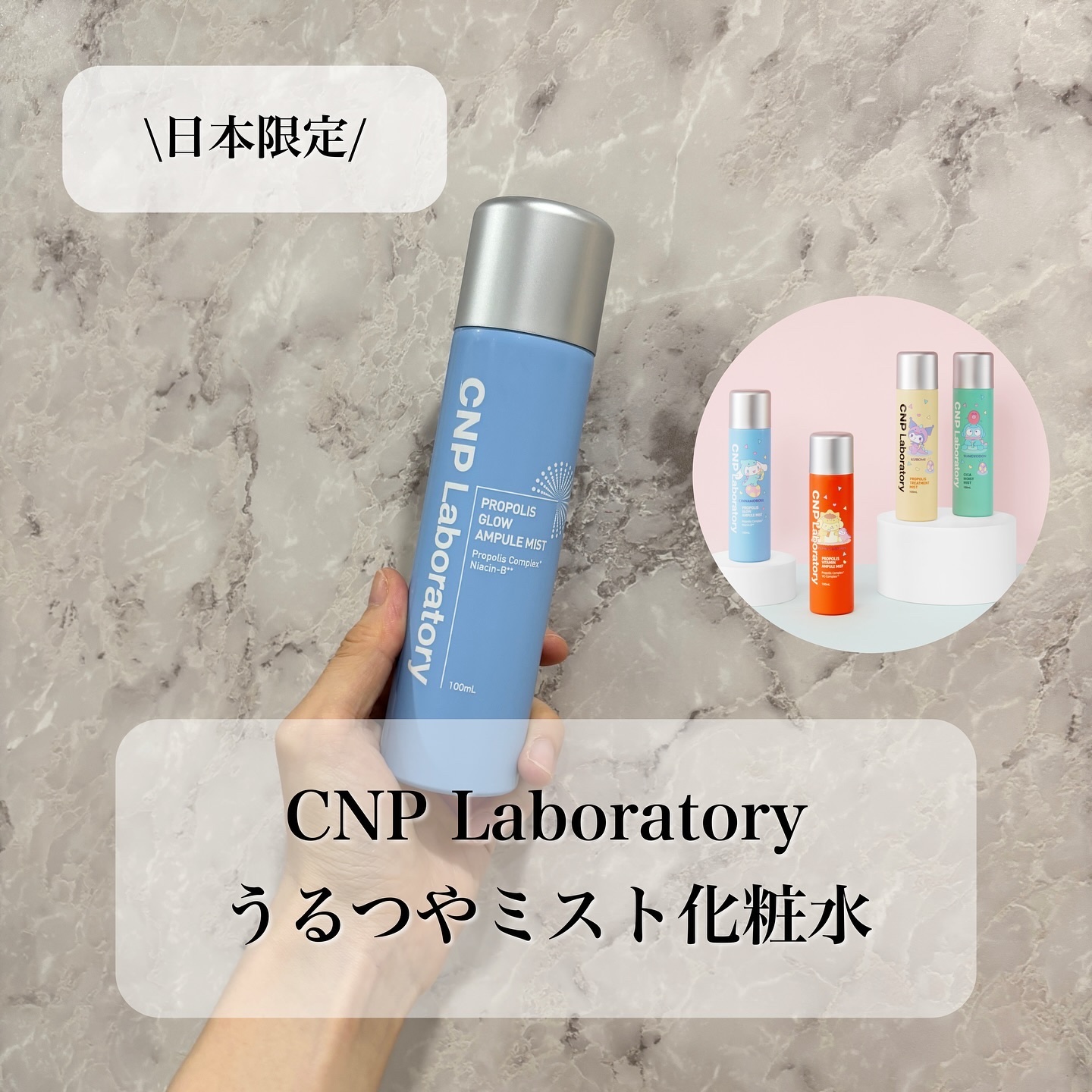 - 日本限定発売 CNP プロ P G シリーズ Propolis Complex ※2+ナイアシンアミド※1配合 肌の油分・水分バランスの乱れにお悩みの方向け。 Propolis Complex※2 とナイアシンアミド※1 が肌キメを整え、肌荒れを防止します。 ツヤのあるみずみずしい肌へと導きます。 プロポリスエキス配合※3 で、簡単ハリ・弾力ケア 霧のように細かいエアゾールタイプのミスト化粧水です。 スキンケアのみならず、メイクの上から乾燥を感じた際にシューッとひと吹きすることで、肌のすみずみにうるおいを与えます。 ※1 整肌成分 ※2 整肌成分:BG、水、プロポリスエキス、マデカッソシド、ザクロ果実エキス、イチジク果実エキス、ツルニンジン根エキス、メリッサ葉エキス、β-グルカン、乳酸桿菌/プロポリス発酵液、1,2-ヘキサンジオール、ナイアシンアミド ※3 保湿成分