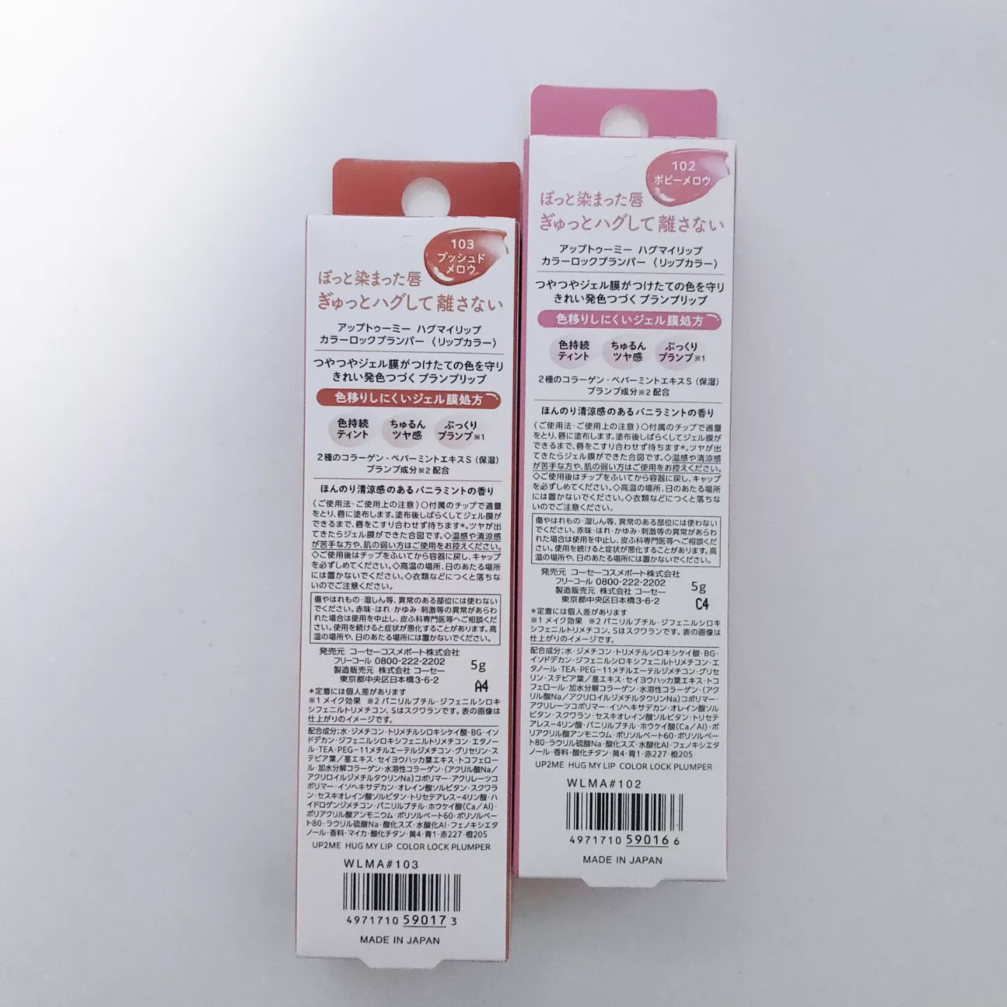 \up2meアップトゥーミー ハグマイリップ カラーロックプランパー/003ネオタルジック102ポピーメロウ103ブッシュドメロウ104 クラッシーベイビーマツモトキヨシ・ココカラファイン限定色スースーしてちょうどいいプランプ効果痛くもないの...
