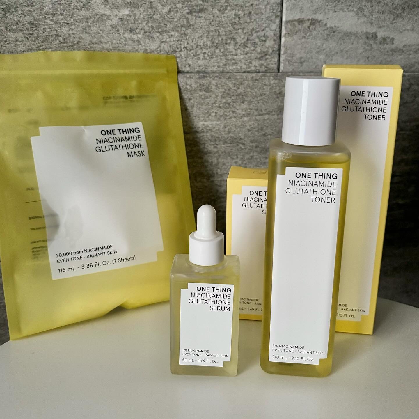 ワンシングの新作ナイアシンアミドグルタチオン3種類💭・ナイアシンアミドグルタチオントナー210ml・ナイアシンアミドグルタチオンセラム50g・ナイアシンアミドグルタチオンマスク(7枚入り)トナーはほんの少しだけトロミがある感じで、夏でもさっぱ...