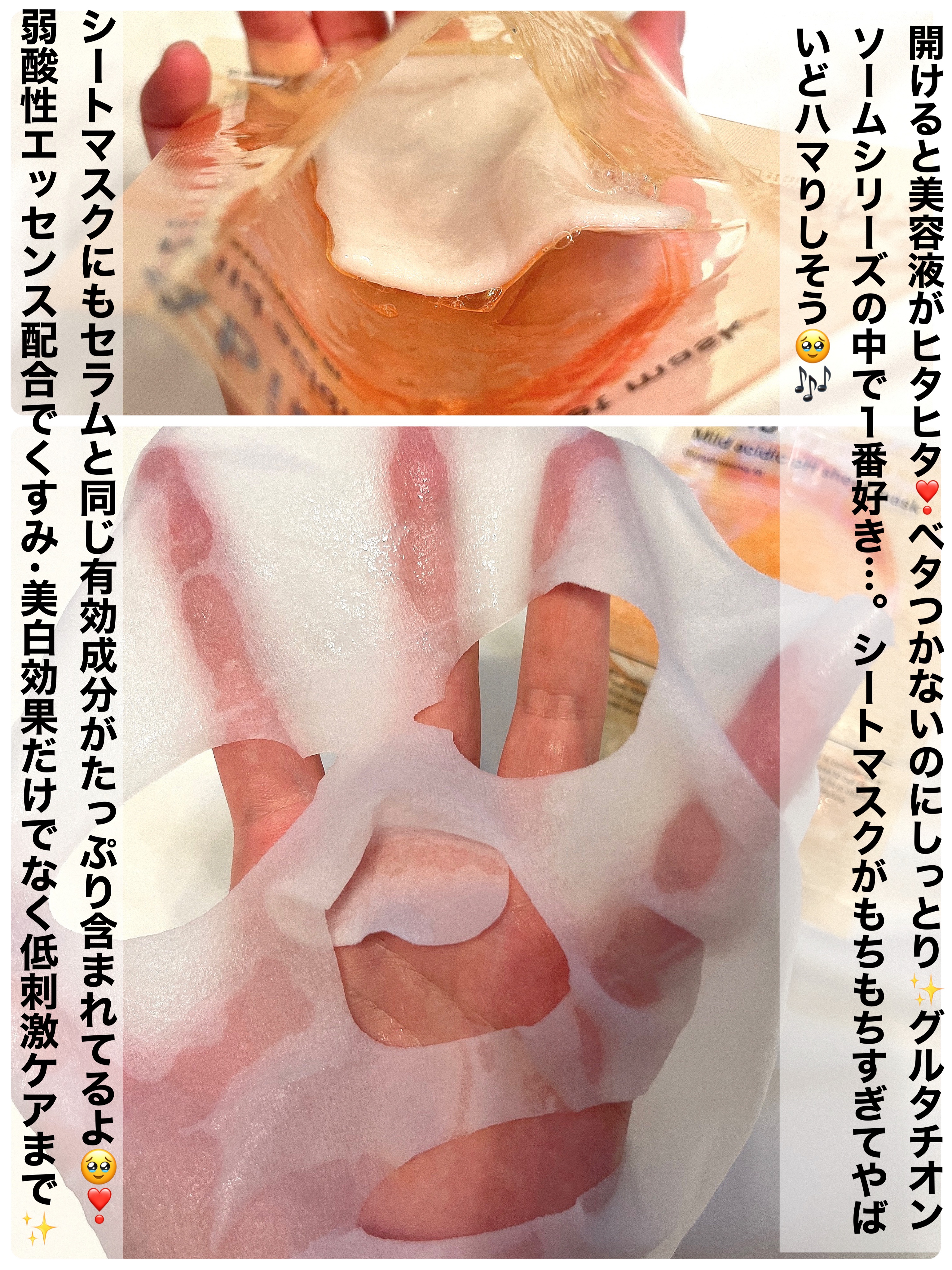 | 厚すぎず薄すぎない肌あたりのいいシートマスク。パック後はたっぷり保湿されてる感じでうるツヤすごかった✨ | 詳細を見る |