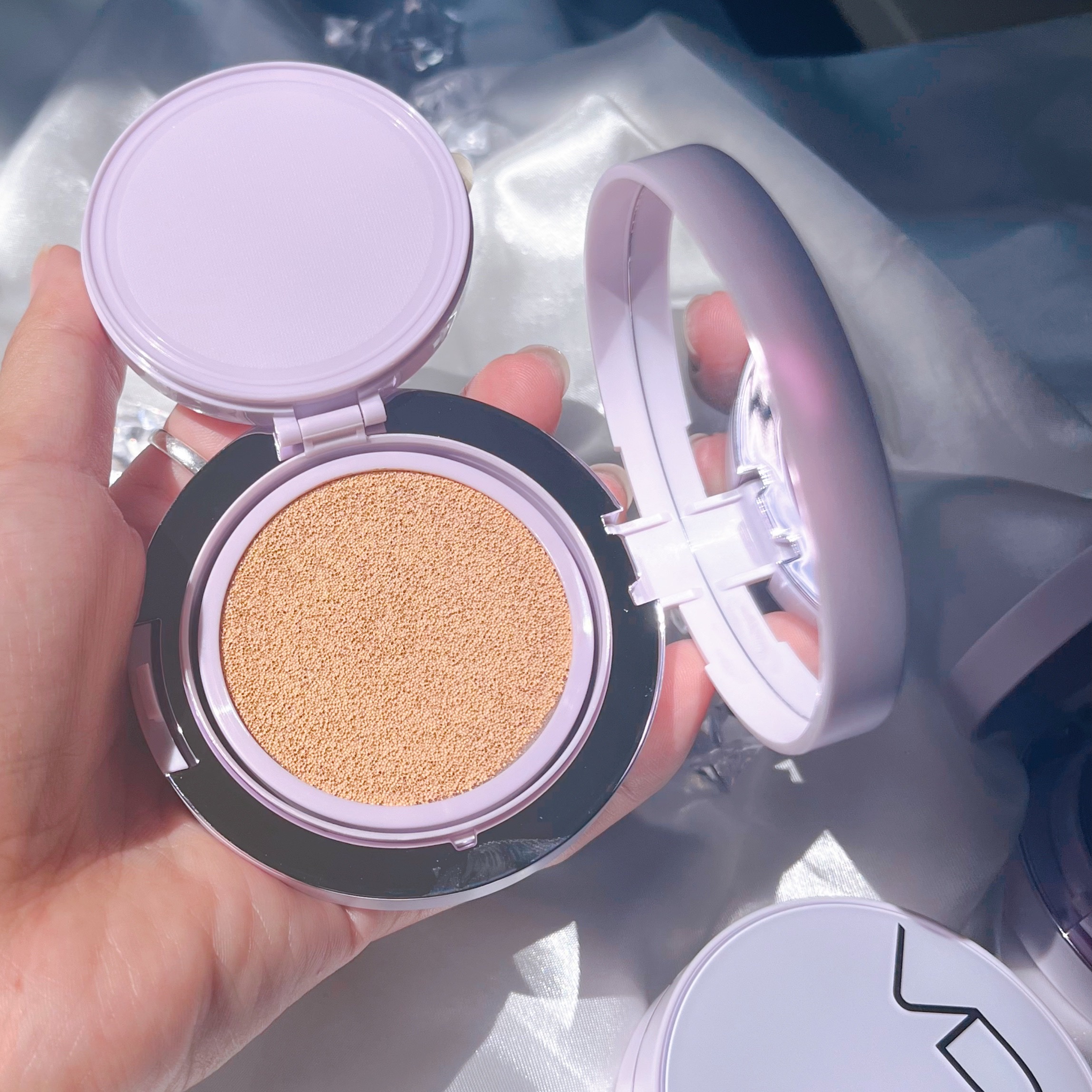 - ■ ピタッと密着、メイクしたてのシルキー美肌を長時間※1キープ 1)肌と親和性のある「密着カバーパウダー※2」が、⽑⽳やシワなど肌の凹凸を自然にカバー。なめらかなシルキー肌に仕上げます。 2)「フィルムレイヤー※3」が肌にピタッと密着して、メイクしたての仕上がりを長時間※1キープ。マスクや衣服に色移りしにくく、化粧直しを忘れそうな肌へ。極薄の化粧膜で重ね塗りしても澄明感をキープ。 3)肌に存在する保湿成分に近い「アミノ酸複合体※4」と「スクワラン※5」がうるおいを持続※6。湧き上がるようなツヤ感を演出します。 4)専⽤パフは、細かいところも塗りやすいしずく型。肌に吸いつくような厚みのあるふんわりもちもちのパフで、塗る瞬間も気持ちよく、特別なテクニックがなくてもムラなく均一に仕上げられます。 ※1 持続データ 韓国外部試験機関にて取得済み。効果には個人差があります。 ※2 着色剤:酸化チタン、不透明化剤:水酸化Al、スキンコンディショニング剤:パルミトイルプロリン、パルミトイルサルコシンNa、パルミトイルグルタミン酸Mg、界面活性剤:パルミチン酸 ※3 皮膜形成剤:トリメチルシロキシケイ酸、ポリメタクリル酸メチル、ポリプロピルシルセスキオキサン ※4 スキンコンディショニング剤:クレアチン、尿素、フルクトース、グルコース、アラニン、トレオニン、グリシン、グルタミン、ヒスチジン、グルタミン酸、塩化Ca、アスパラギン、塩化Mg、ウシ血清アルブミン ※5 保湿成分 ※6 スキンケア効果による