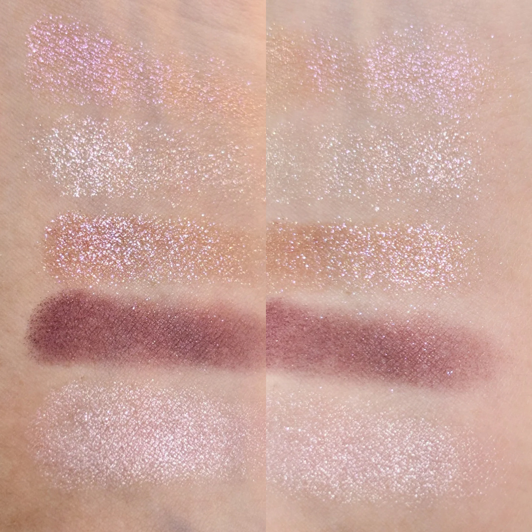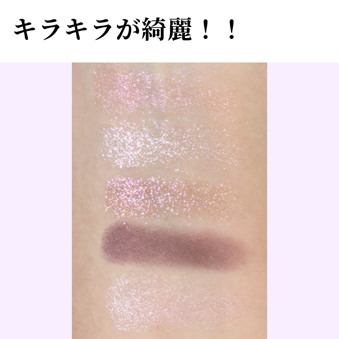 ⭐︎パーフェクトダイアリーシルバーパールキラキラ!!ひと塗りでしっかり付く✨ ⭐︎Diorプルーパールでキラキラ✨こちらも粉質良くてひと塗りでしっかり付く!写真で見ると1番キラキラに見えました。大きいパールと小さいパールのどちらもある感じでさすがDior👏 ⭐︎fwee粉が硬めで付きが他に比べて弱く感じました💦パールがシルバー系で見た目はパーフェクトダイアリーに似ていたので個人的にはこれよりもパーフェクトダイアリーの方がおすすめ! MACこれは細かいパールぎっしりの面で光る感じ✨パープルっぽく光るのでピンク系のメイクと合いそう♡