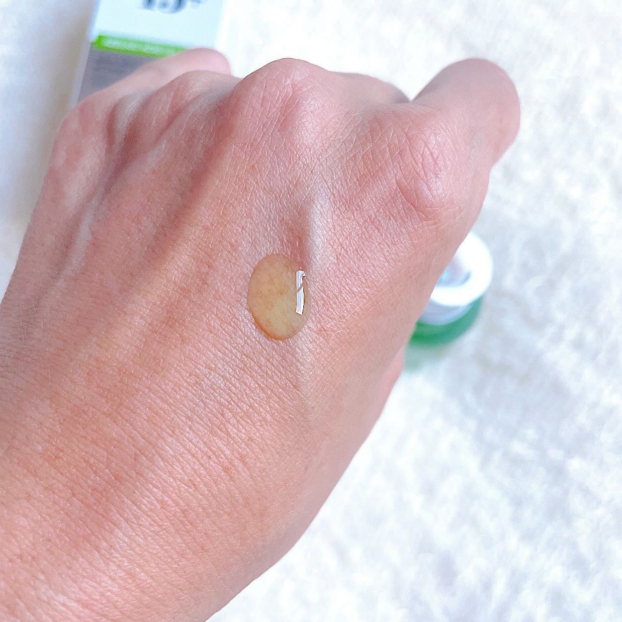 サラっとした軽い塗り心地✨ 手に取り出した時は、硬めのクリームのような感じなのですが伸ばしてみるとサラっとした テクスチャになります。 塗ったあとの肌はベタつきなどなく 多少のみずみずしさがあります。 塗り心地は良い❣️