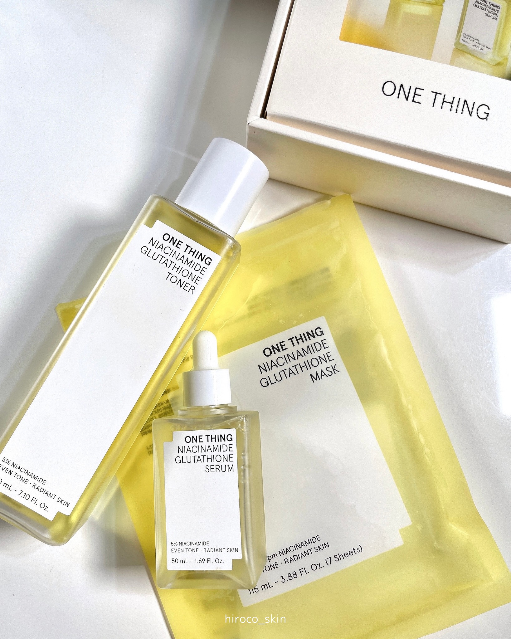 ワンシングの新作ナイアシンアミドグルタチオン3種類💭・ナイアシンアミドグルタチオントナー210ml・ナイアシンアミドグルタチオンセラム50g・ナイアシンアミドグルタチオンマスク(7枚入り)トナーはほんの少しだけトロミがある感じで、夏でもさっぱ...