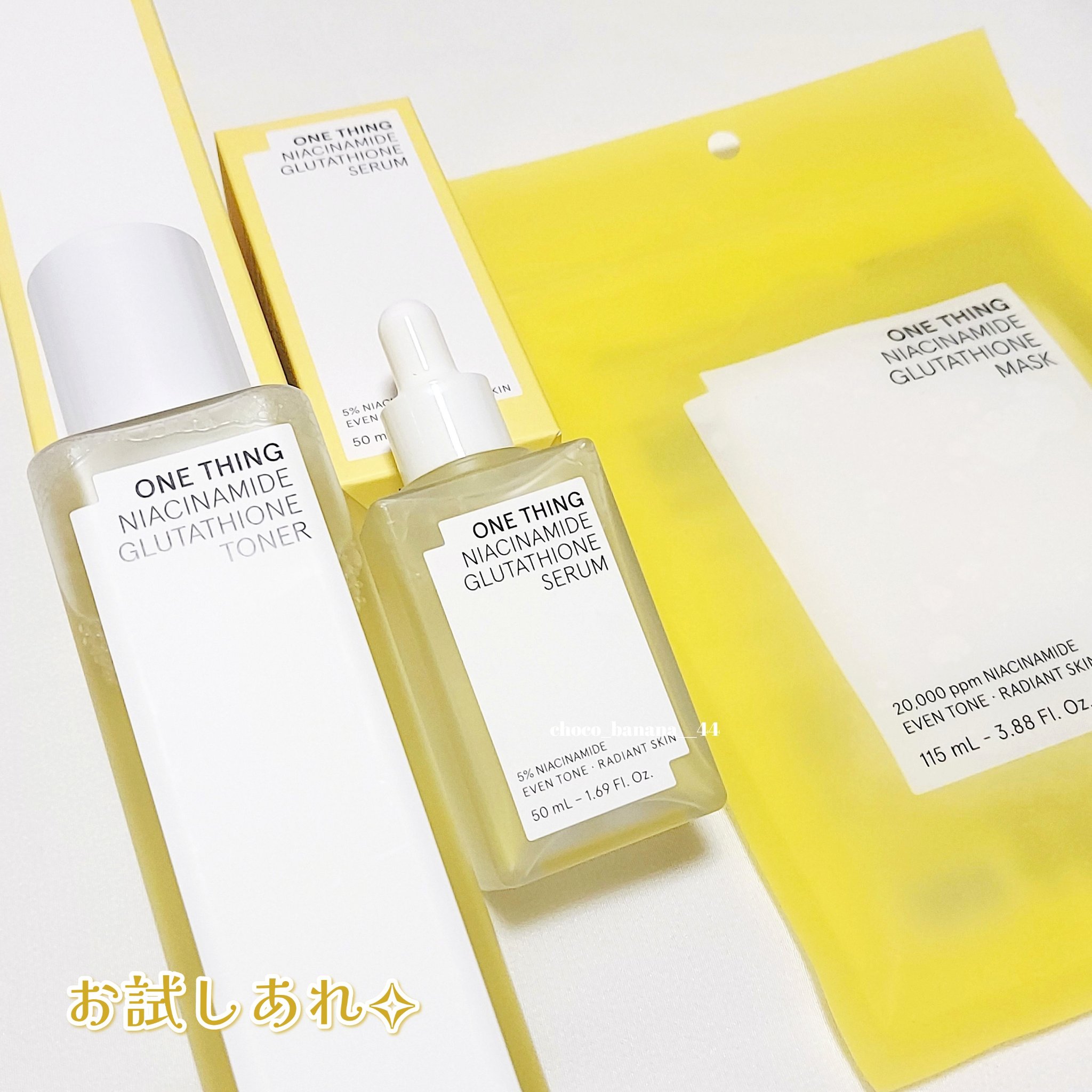 ワンシングの新作ナイアシンアミドグルタチオン3種類💭・ナイアシンアミドグルタチオントナー210ml・ナイアシンアミドグルタチオンセラム50g・ナイアシンアミドグルタチオンマスク(7枚入り)トナーはほんの少しだけトロミがある感じで、夏でもさっぱ...