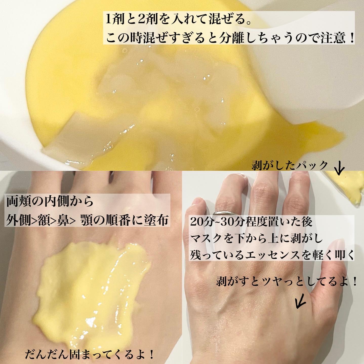 冷たいビタミンセラムの隙間なく肌に密着するモデリングマスク💛 クリームベースの液体が不必要な角質と老廃物を吸着し、水分を肌に届け涼しくクーリングケアしてくれる🥣 時間が経ってもぷるっぷる!! 剥がした後も水分が肌に行き届いてたよぉ😳🤍 簡単にスペシャルホームケアができちゃうから今度友人にエステ気分でやらせてもらおうかな?💓