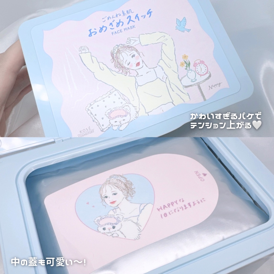 - 朝のお悩み肌も速攻ケアできる 『おめざめスイッチマスク』 ①1分の集中ケアで、朝のおなやみ肌も速攻ケア。メイクノリUP ひんやりした使い心地で、寝起きの肌をシャキッとひきしめ! みずみすしくべたつかないから、すぐにメイクができ、長時間キレイな肌つづきます。 ②あれがちな肌にも使いやすい低刺激設計 弱酸性・無香料・無着色・無鉱物油・アルコールフリー・パラベンフリー・紫外線吸収剤フリー・シリコーンフリーの低刺激処方。やさしい使い心地です。