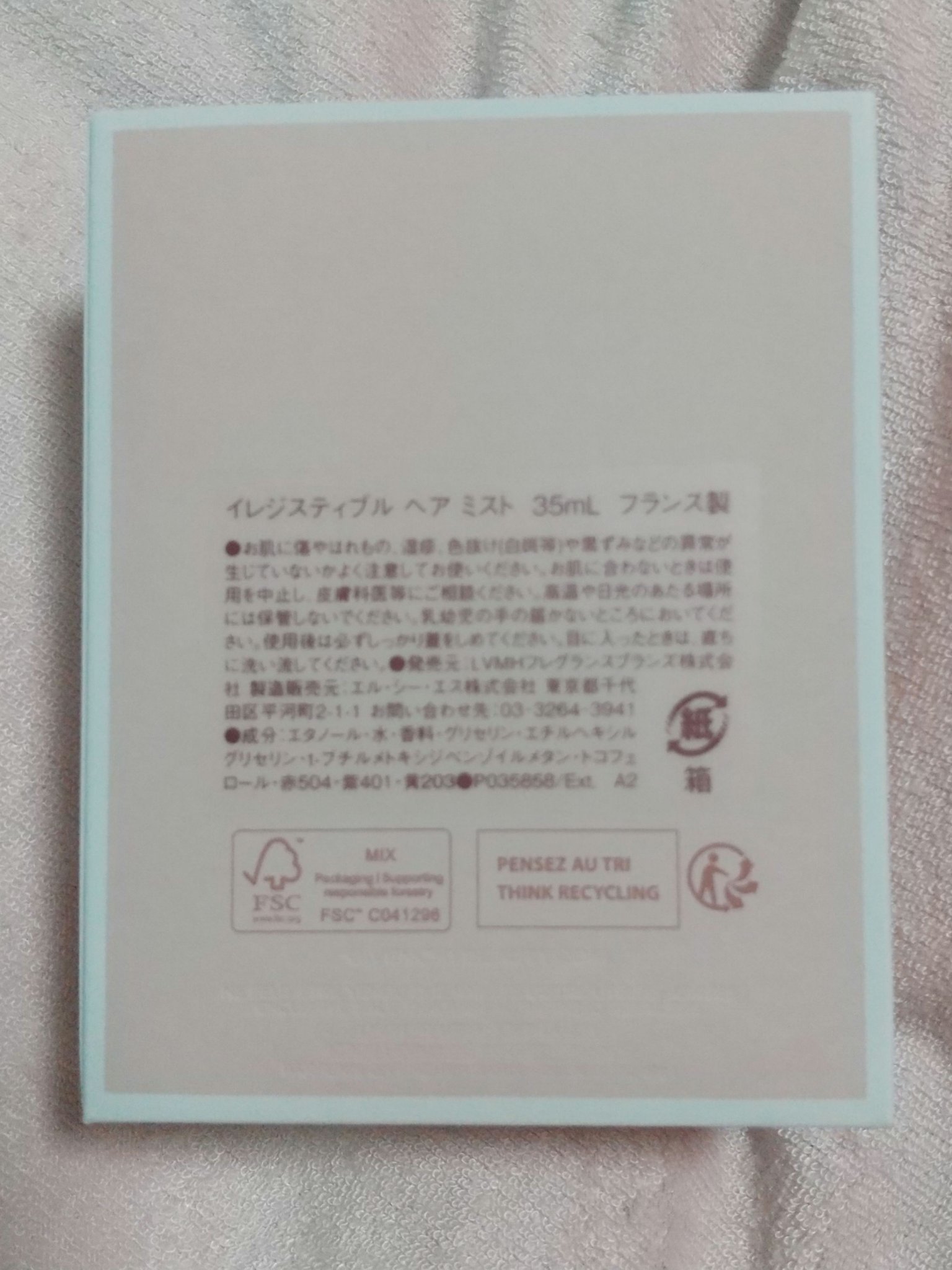 髪がなびくたびにふわりと香るイレジスティブルのヘアミスト。香調はフローラル・ウッディ・フルーティで、可愛らしさとエレガントさを感じるフェミニンで優しい香りだよ。 ひと吹きで充分香るからコスパも◎。私は髪が細く香りが付きやすいタイプだからか香り持ちも良かったよ。 4Gのロゴや洗練されたボトル、ピンクパケもおしゃれで可愛い♡