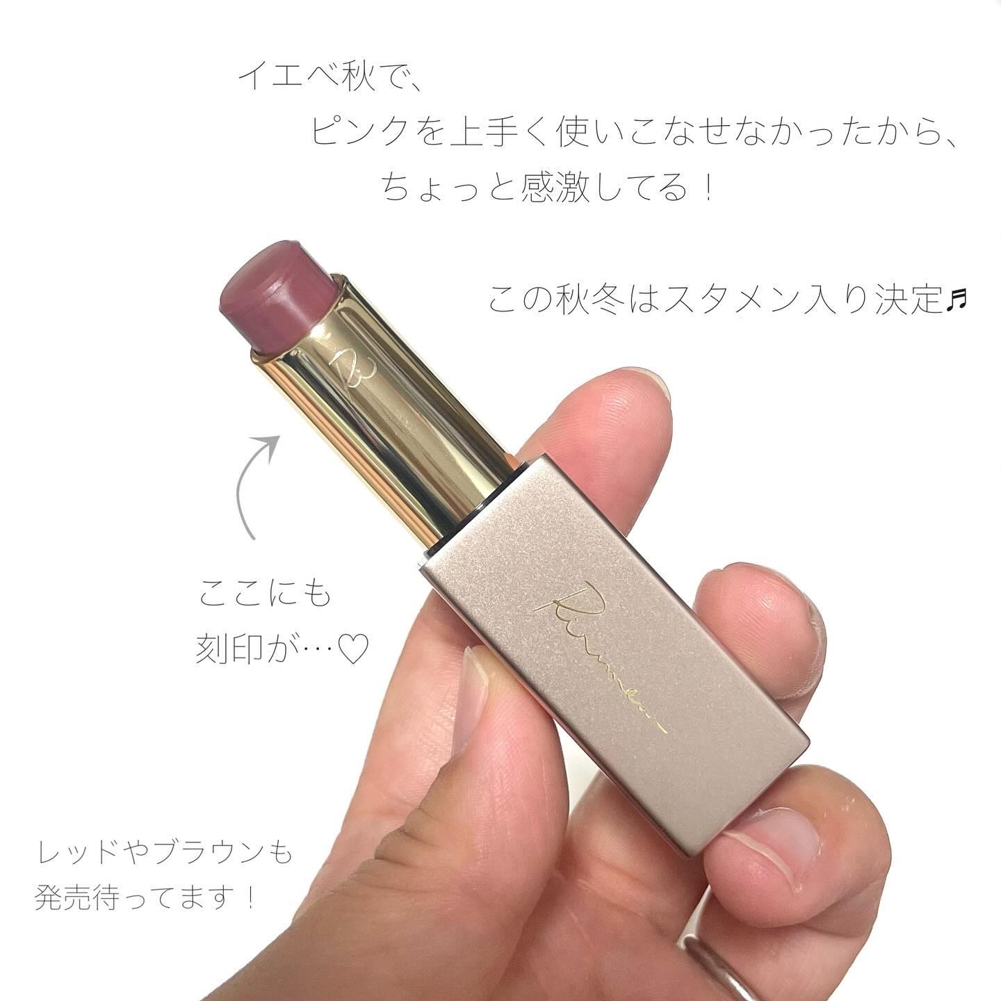 唇でこっくりとろける、つやんと色気リップ♡ このとろける感じとか、ちょっとこっくり感あるのにするする伸びる感じとか、気持ち良く使えるアイテム♪ 02 マーメイドプラムは、ちょっと紫がかった深みのあるピンクなのでイエベ秋に似合うピンクというなかなか超えられない壁を越えてきた神色!!! リップのツヤ感とうるおいキープ力が◎!ヘビロテ間違いなし。