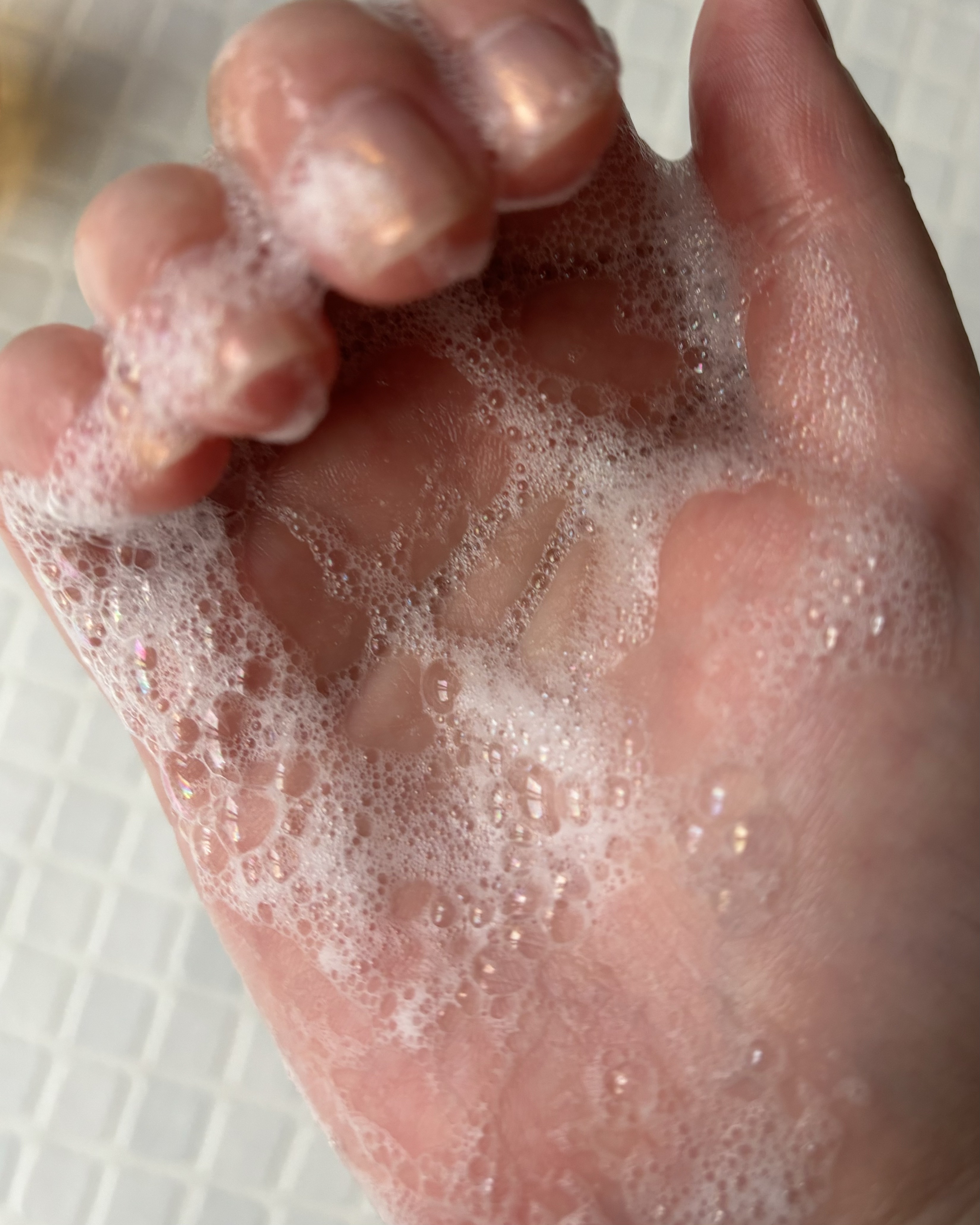 普段ボディソープで毎日洗っているけど スクラブでケアするとこんなにウルスべになるの!?🥹 しかも泡立ててそのまま洗えるし時短ケアも できて嬉しい😚 ピンク色のテクスチャー可愛いですよね☺️🩷 甘いバニラの香りがするのでバスタイムも 香りを堪能できます🎶👏