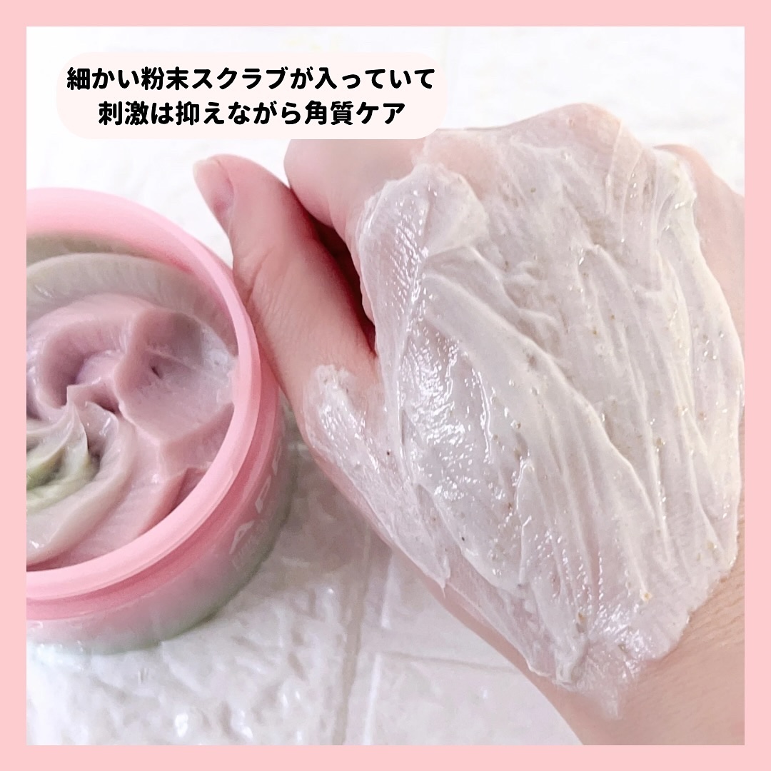 ピンクとアロエ色、またホイップしたような見た目がとっても可愛いです。 テクスチャーはふわふわしっとりなめらか。なめらかに伸びて、優しくなじませることが出来ます。 肌が食べる新感覚メレンゲクレンザー! やわらかい濃度で埋め尽くし、毛穴の隙間まで完璧に皮脂・老廃物・黒ずみを吸着。 保湿成分と自然クーリンク成分で使用後の毛穴引き締めまで。
