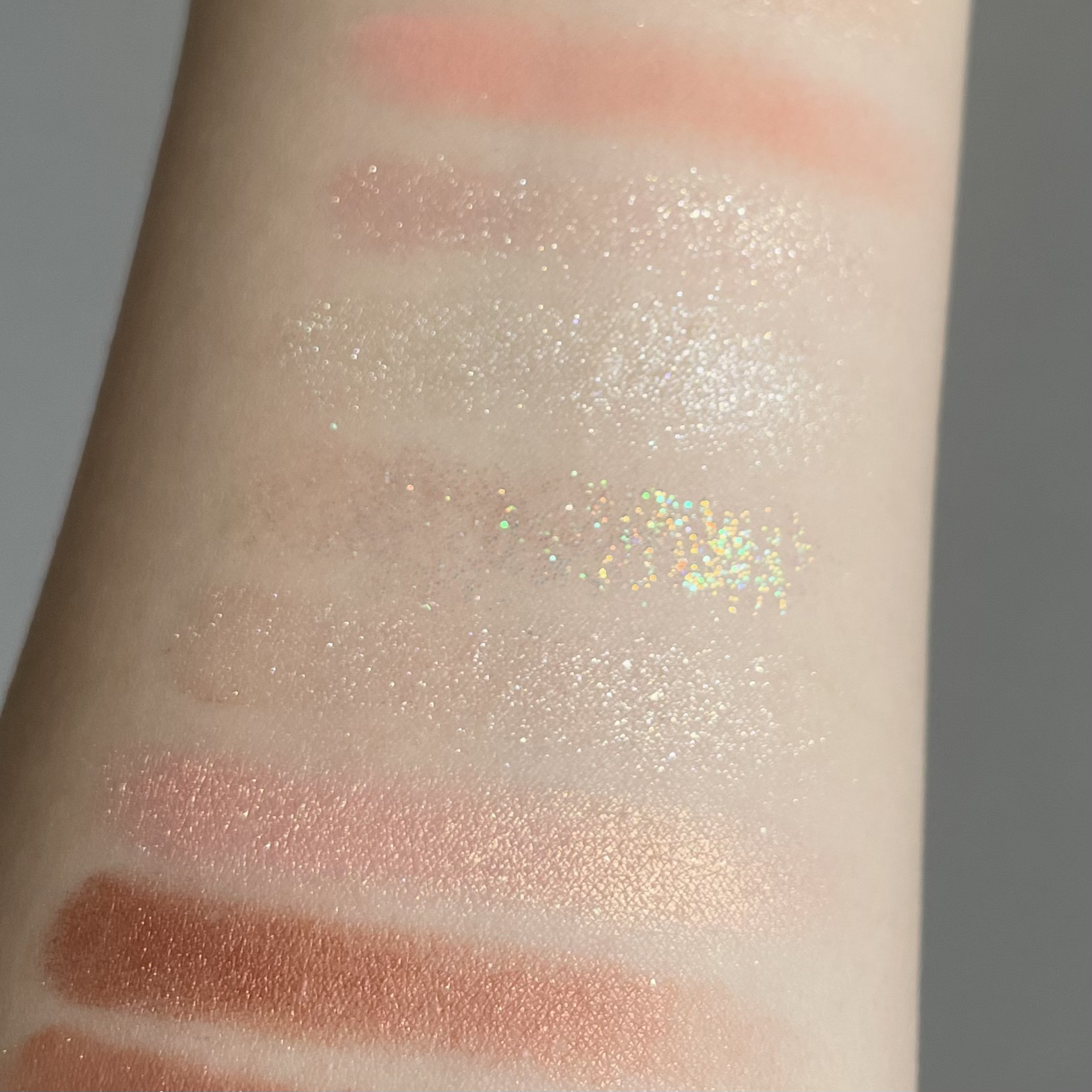 - グラムチェンジマルチパレットは高濃度ピグメントのベルベットテクスチャーが一度のタッチで鮮明なカラーを発色します。植物由来のシリカパウダーで、目元の余分な油分が抑えられ、クリーズ現象やダマにならずに柔らかく、ブレンディングしやすいのが特徴です。 マット、マットパール、グリッター、ベルベットシマーなど卓越した4種類のテクスチャーを12色で構成したグラムチェンジマルチパレットは、キャラメルブラウンデイリーパレットとリッチローズデイリーパレット2種類をご用意しております。