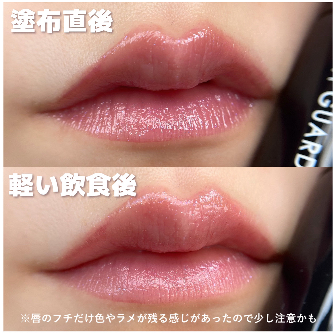 唇に青ラメの銀河♥️「メロウラッピングルージュ51:ルーナローズ」のカラーをご紹介していきたいと思います!! ジェル膜が唇に密着。ネーミングの通り…唇の「GUARDIAN(守護者)」が色・ツヤ・うるおいを守ってくれる♥️ 落ちにくいだけじゃなくて、飲食した後も唇が乾燥でつっぱってきたりしなく、潤いも残ってくれること…!!✨