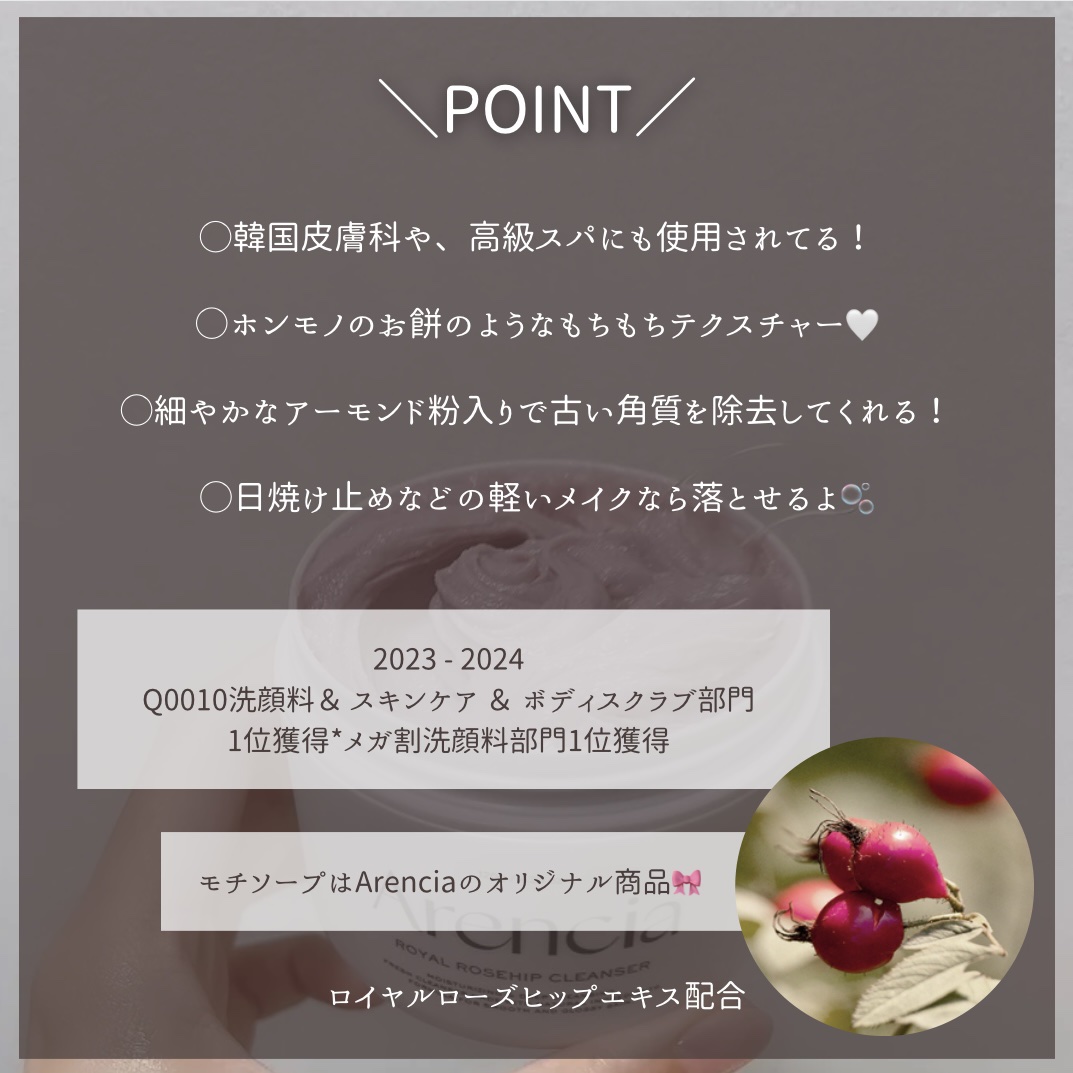 韓国の江南で一大旋風を巻き起こし、今回Qoo10のビューティーランキングで🎉\1位を獲得/🎉した「もちソープ」を始め、ついに日本でも展開をはじめたのがこのArencia(アレンシア)さん。動物実験を行わず、自然から得たフレッシュな原料を使用し...
