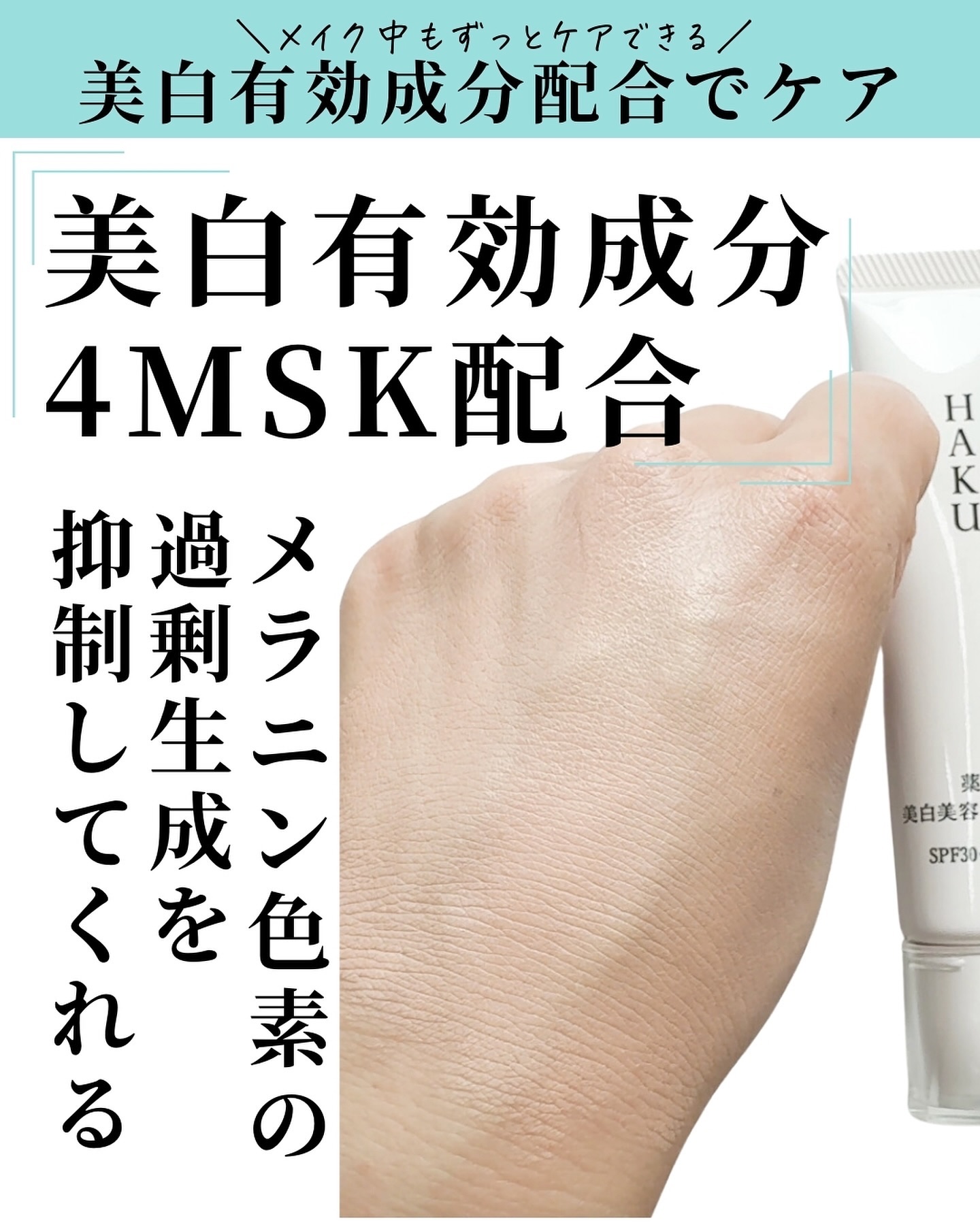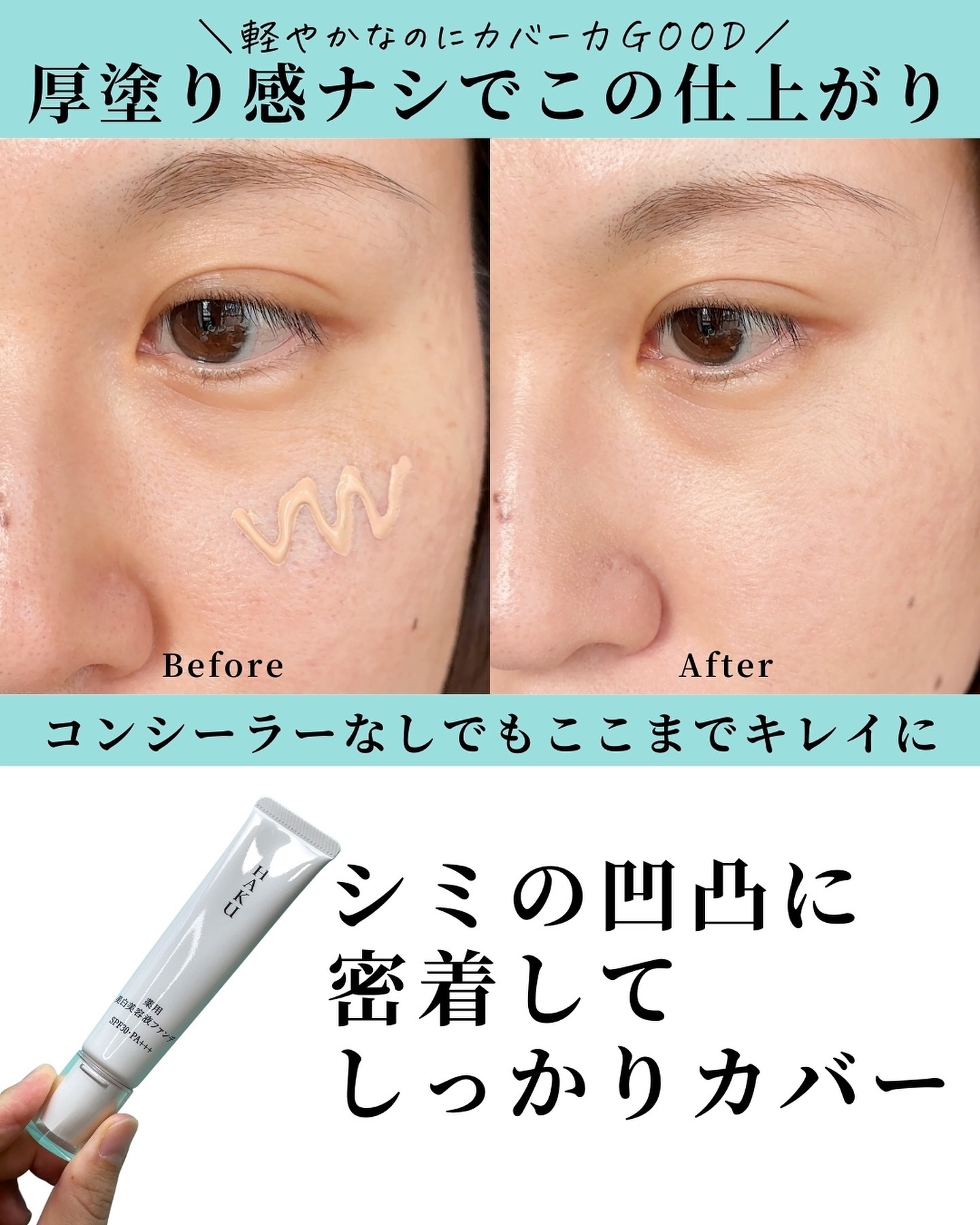 - SPF30 PA+++ 美白ケアしながら密着してシミカバーするファンデーション。 美白有効成分がメラニンの生成を抑え、シミ・そばかすを防ぎます。 軽やかに広がり、気になるシミや色ムラに密着して目立たせず、みずみずしいうるおいが長時間続きます。 明るく自然な仕上がりで、シミの目立たない、美発光肌へ。 無香料 (販売名:HAKU ブライトニングファンデーション)