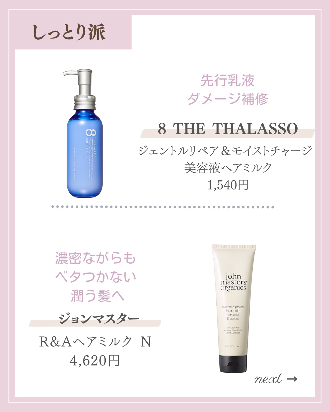 エイトザタラソ ジェントルリペア&モイストチャージ 美容液ヘアミルク | 1,540円 |