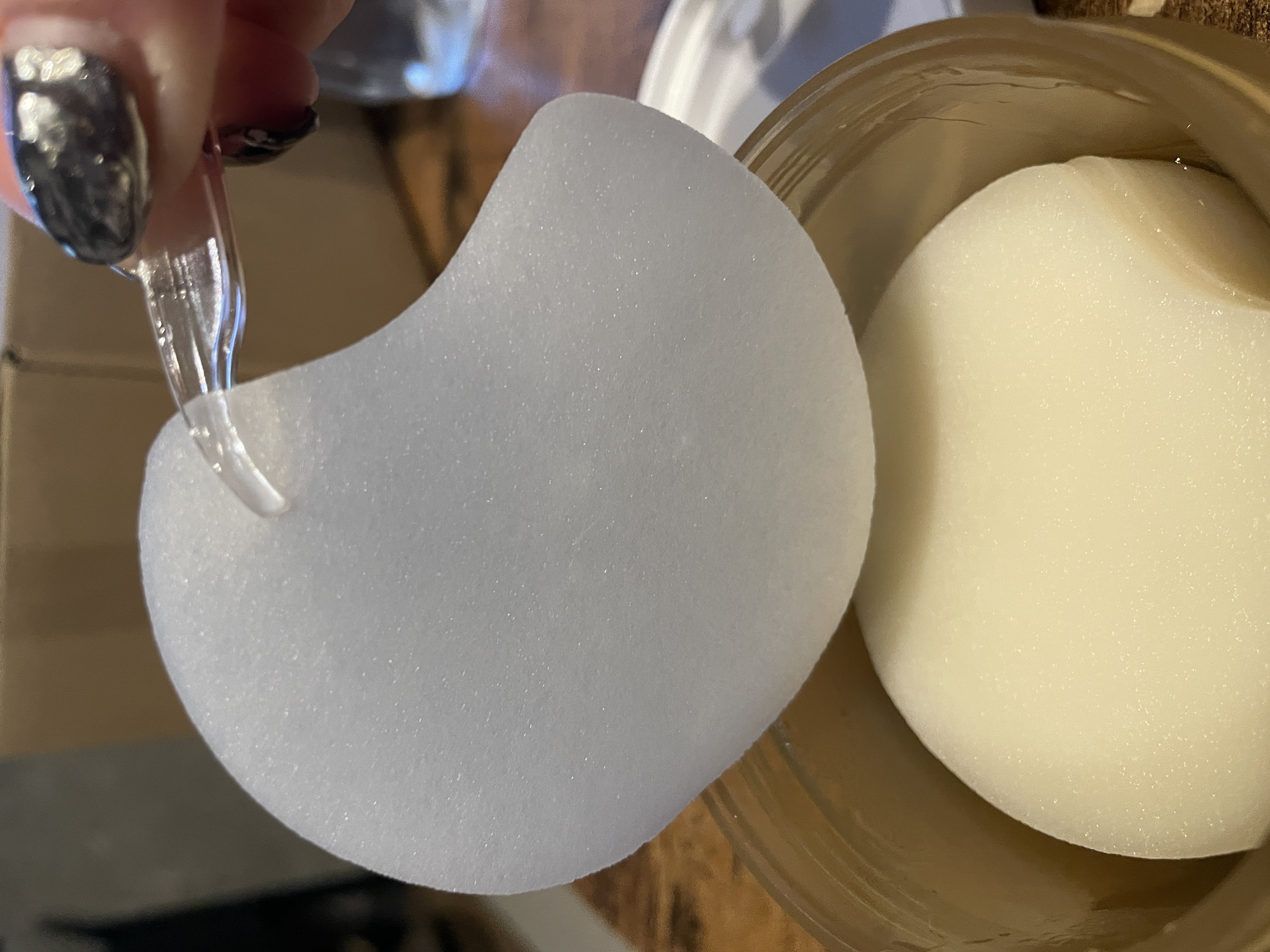 たっぷり美容液がひたした薄いパッドが70枚入ってる🫶 トングもついてて衛生的。パッケージもシンプルでかわいい 密着がよく、どんな箇所でもぴたーっと張り付く。3分くらい貼って剥がして美容液を肌になじませると、しっとりもちもち、ひんやり引き締まった感じがする 目の下ギリギリから頬まで貼れるサイズ感と、密着感がとても良い!取った後の肌感も好き