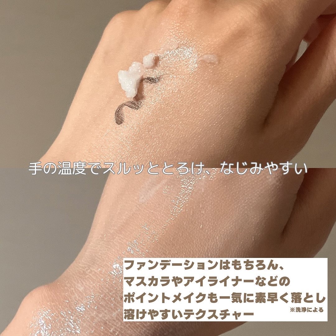 | バームを肌に乗せて撫でるとすぐに オイルみたいにみずみずしく変化✨ | 詳細を見る | ||