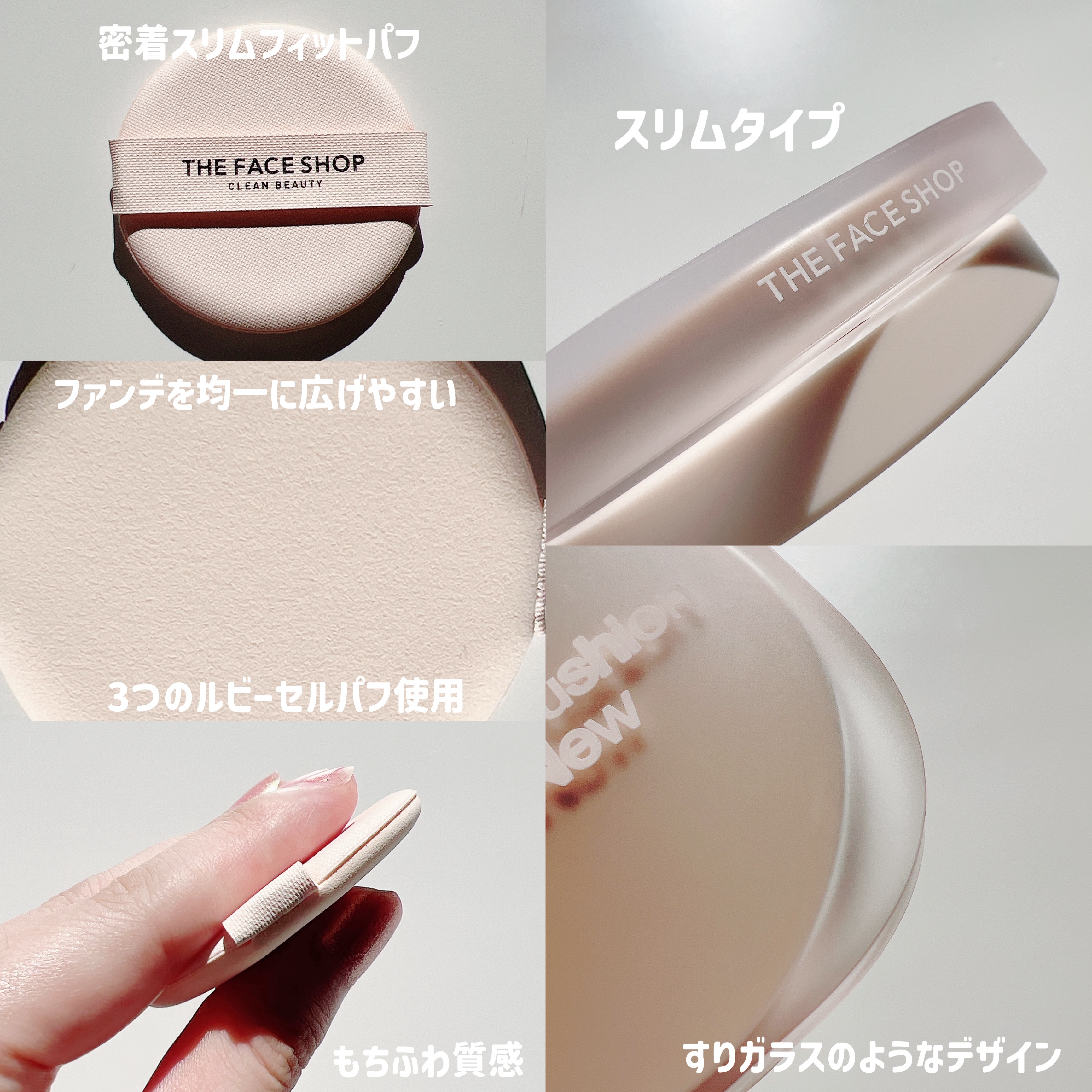 THEFACESHOPInklastingCushionSlimfitNew肌に薄く密着する スパチュラクッション水分入りのスキンケア成分厚塗りにならないのに、カバー力もあってすごく使いやすかったよベタつきにくいから、マスクにつきにくい点も嬉...