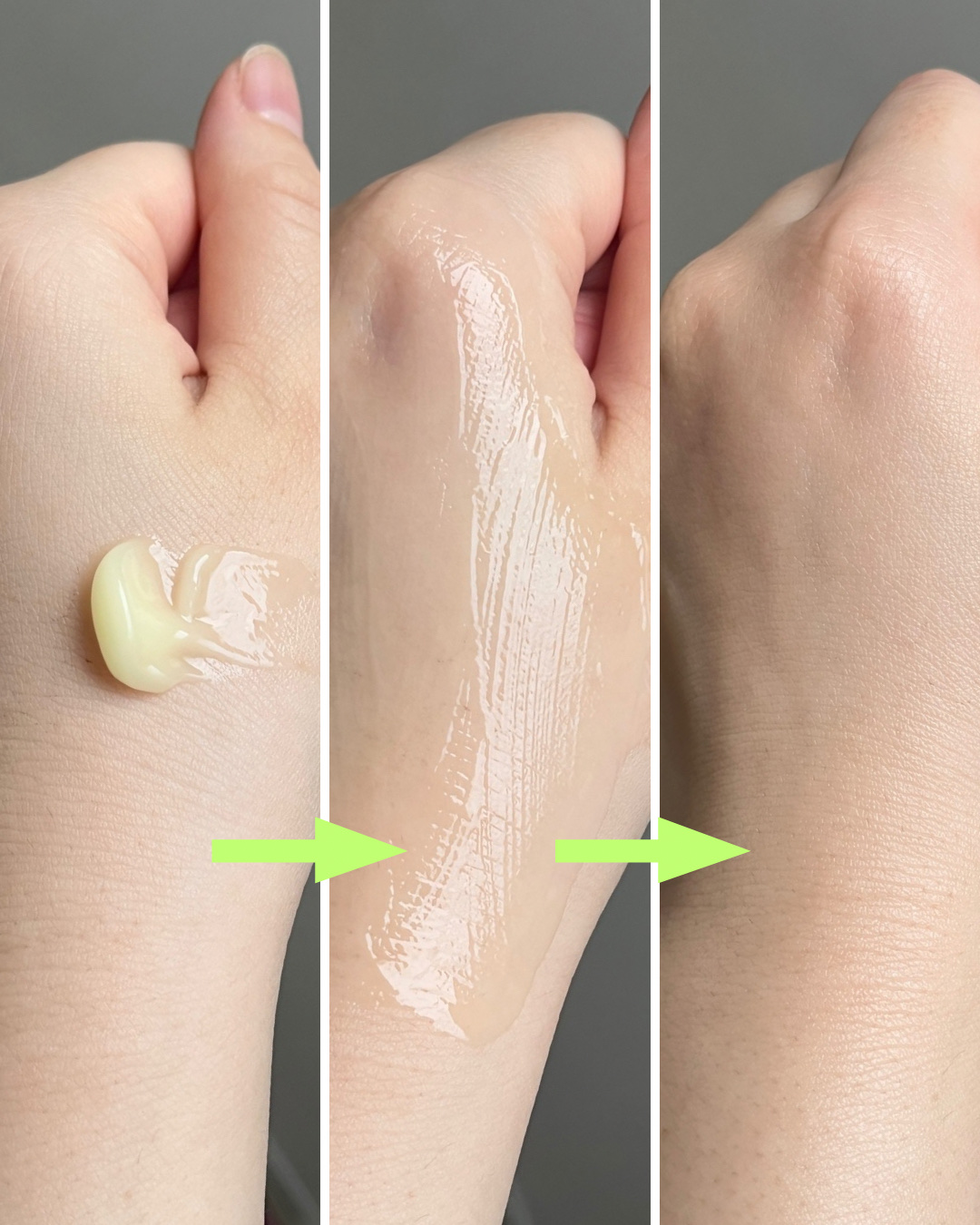 ツヤツヤ仕上がりというよりは、ほのツヤ。表面はサラッと仕上がり。 茹でて少し時間の経った、マットだけど表面はツルッとした感じの方が正しいと思う。 白玉肌成分と呼ばれるグルタチオンなどの美容成分も配合されてて、スキンケア効果が高いらしい