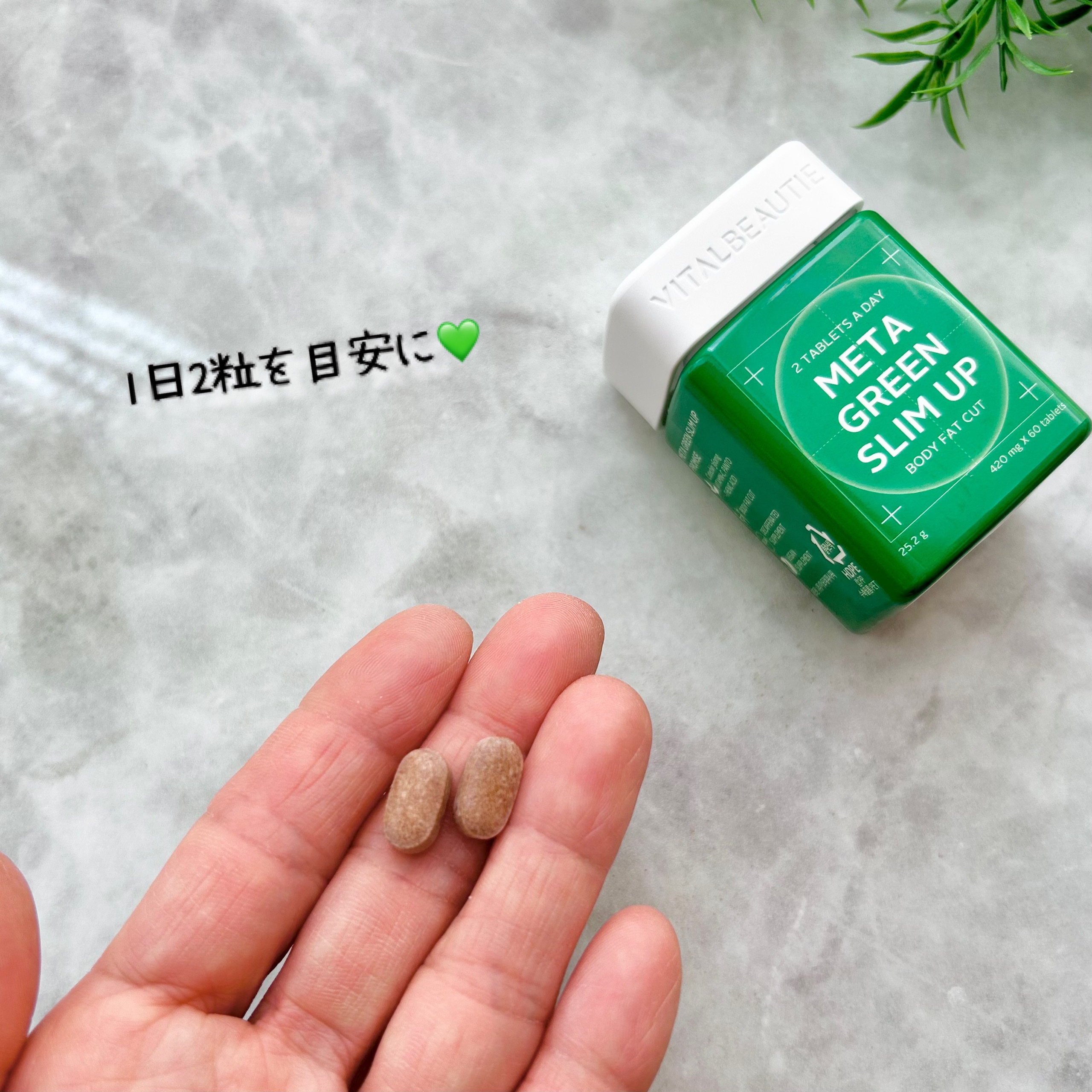 #PRメタグリーンスリムアップ🌿▶@vitalbeautie_official1日2粒💚食後必須アイテム✨緑茶カテキン配合で、食事後の脂肪の吸収を抑えて、排出を手伝ってくれる♡小粒だから飲みやすくて続けやすいのも◎✨#ダイエット#体脂肪減少#...