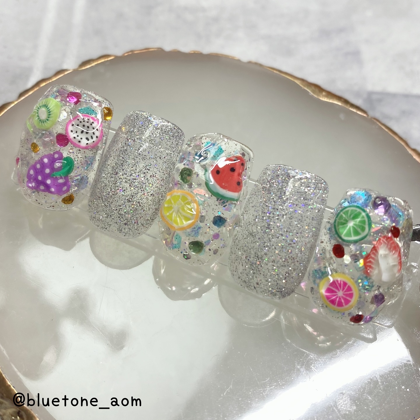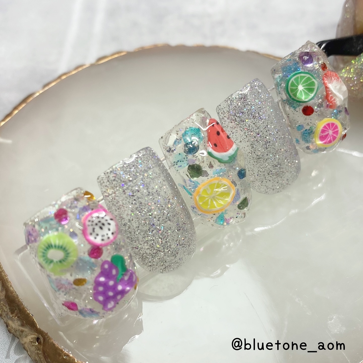 ラメがしっかりしてるし クリアカラーが入ってるから オーロラパウダー無しでも 充分キラキラしました! 反射強めのフィルムなので 実物はもっと うるうるとキラキラが強いです! ビー玉みたい🥺 ネイルシール長持ちさせたいけど ちょっと飽きてきたな〜って時とかに 全然違った印象になるのでオススメです! Seriaのベースジェル 本当にうるうるネイルしやすいので オススメしたい🙆♀️