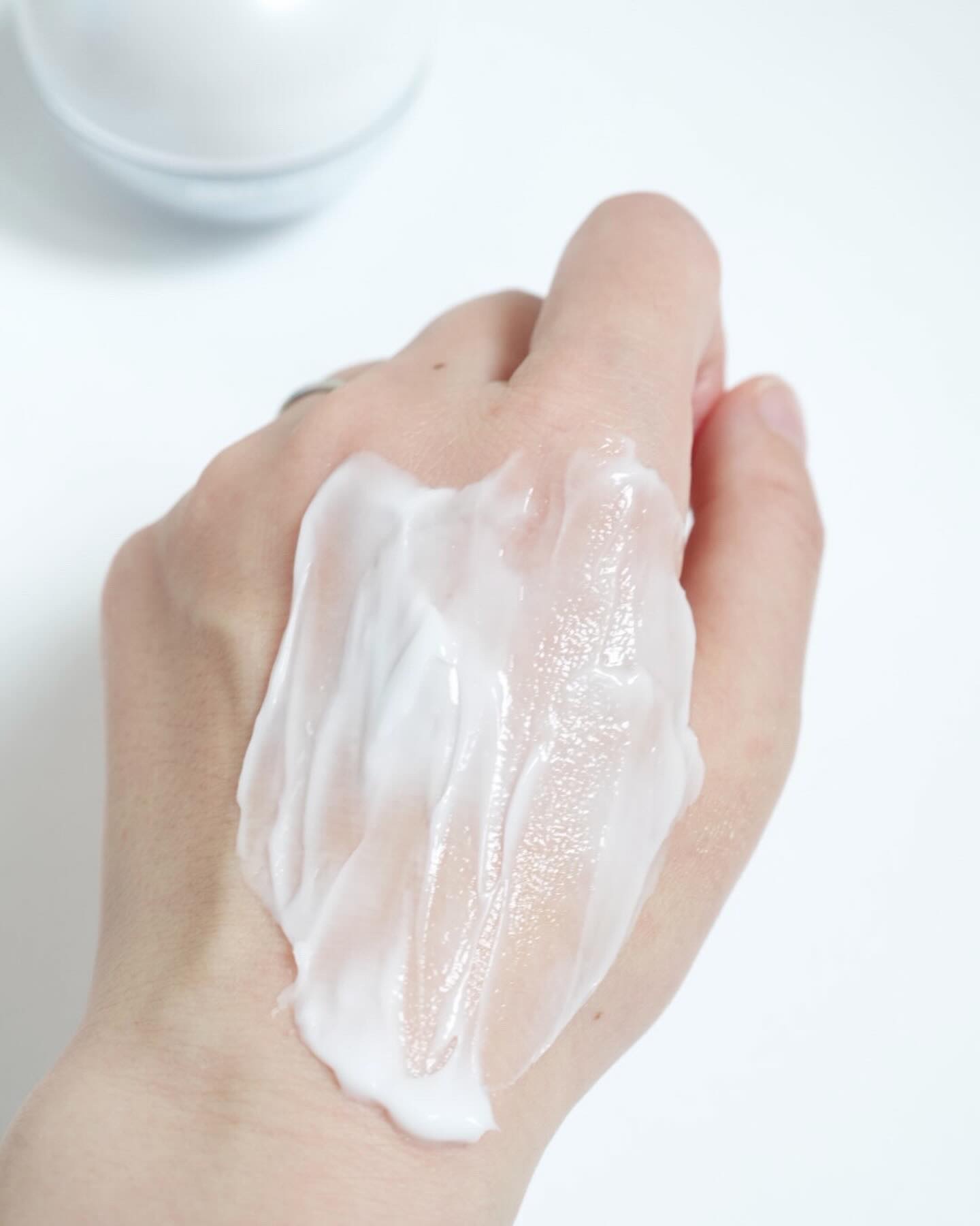 白くサラっと流れるようなテクスチャー 伸びやすく塗り心地もよい。スッと馴染んだらレチノール特有の香りやベタつきも少ない このセラム、めちゃくちゃ好きになりました。翌朝の肌がツルピカパン!これはリピ確定!