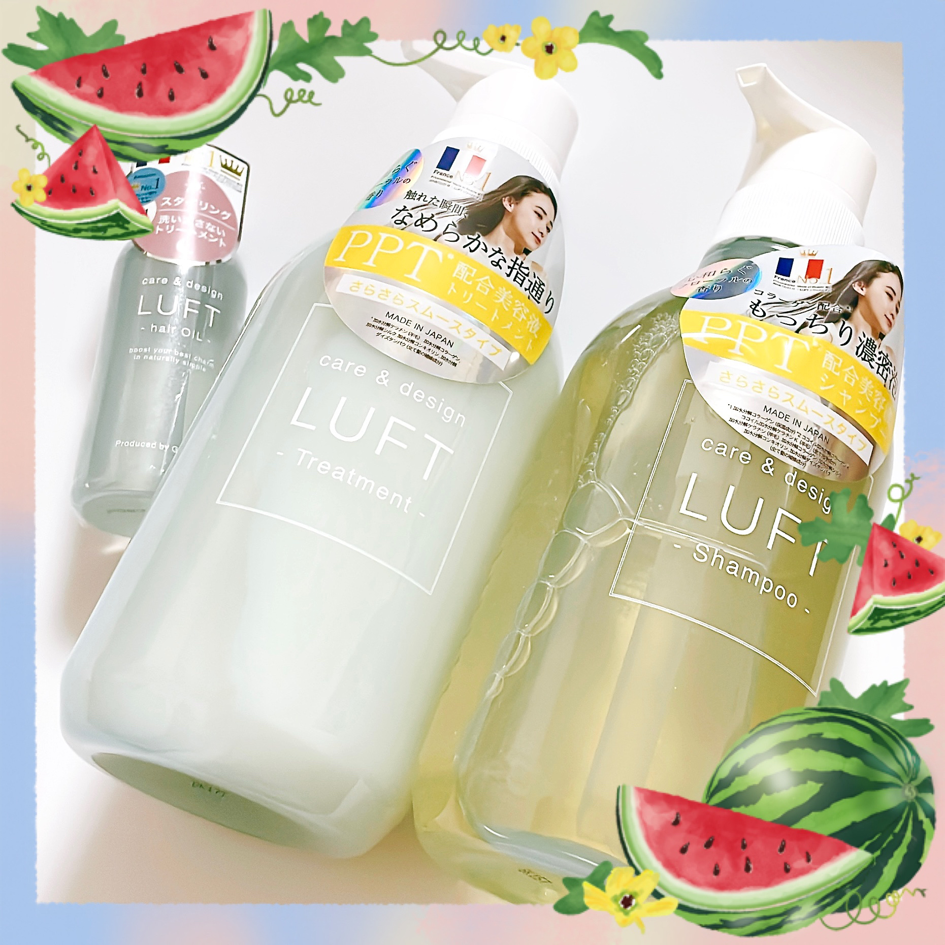 - ヘアケアブランドLUFTから「本物のサロン品質シャンプー」が誕生。 PPT*美容液配合のシャンプーで【美容液で洗う】という新感覚の特別なバスタイムをお届けします。 心和らぐフローラルの香りで毎日のバスタイムをリラックスタイムに。 *ココイル加水分解コラーゲンK、ココイル加水分解ケラチンK(羊毛)(全て洗浄成分)