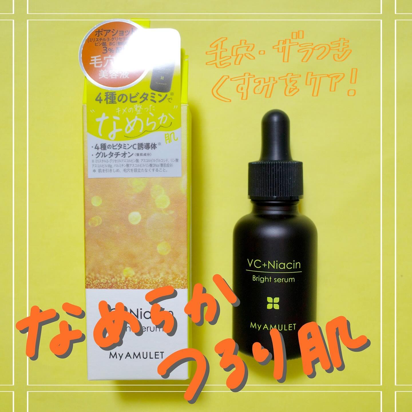 高機能ビタミンC誘導体のポアショット®を配合した、マイアミュレットの導入美容液。 なめらかな肌へサポートしてくれるんだって♡ テクスチャーはさらっとしていて、スーッとなじみの良い使い心地。
