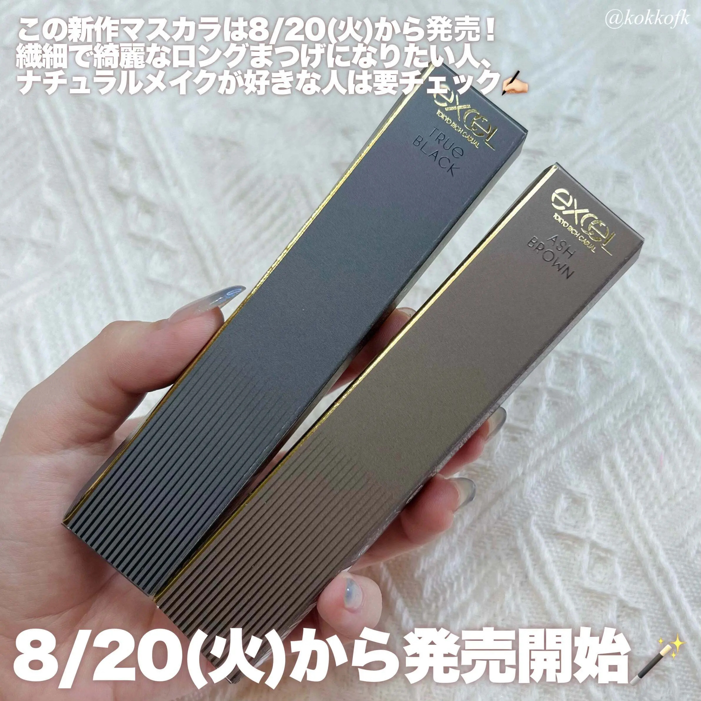 - 長く、美しい、存在感。 上向きまつげが続く繊細ロングマスカラ!繊細ロング&上向きカールが長時間続く ウォータープルーフ×スマッジプルーフ ※8月2日(金)~エクセル公式オンラインショップ、アマゾンにて先行発売