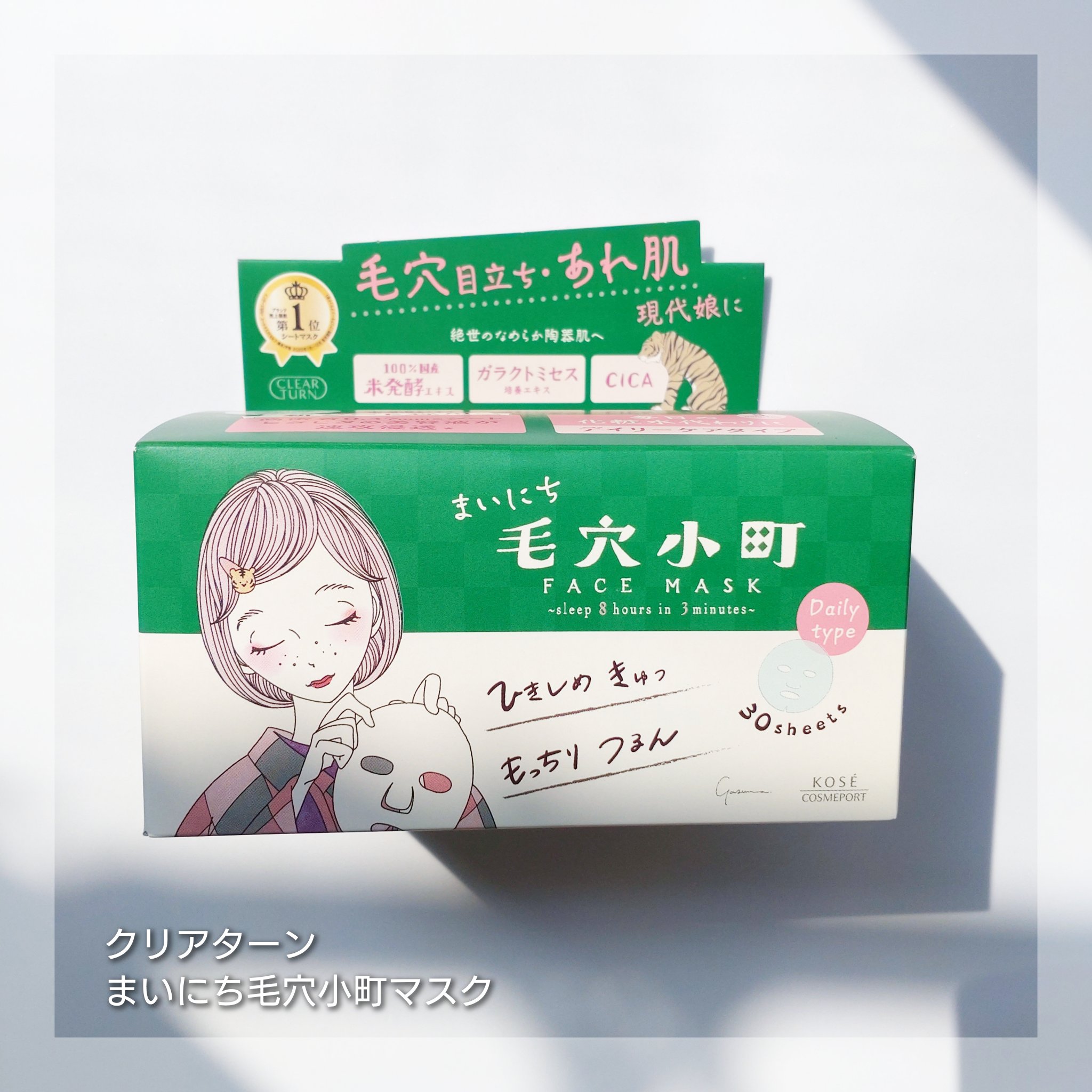- 毎日の化粧水代わりに毛穴・あれ肌Wケアできる『まいにち毛穴小町マスク』 ①化粧水代わりのクイックケアで、毛穴・あれ肌Wケア たった3分のクイックケアで美容液がたっぷり浸透*✨ 水分・油分のバランスをととのえ、つるんとなめらかな陶器肌へみちびきます。 ②あれがちな肌にもやさしい使い心地 弱酸性・無着色・無鉱物油・パラベンフリー・紫外線吸収剤フリー・シリコーンフリー処方。やさしい使い心地です。 *角層まで