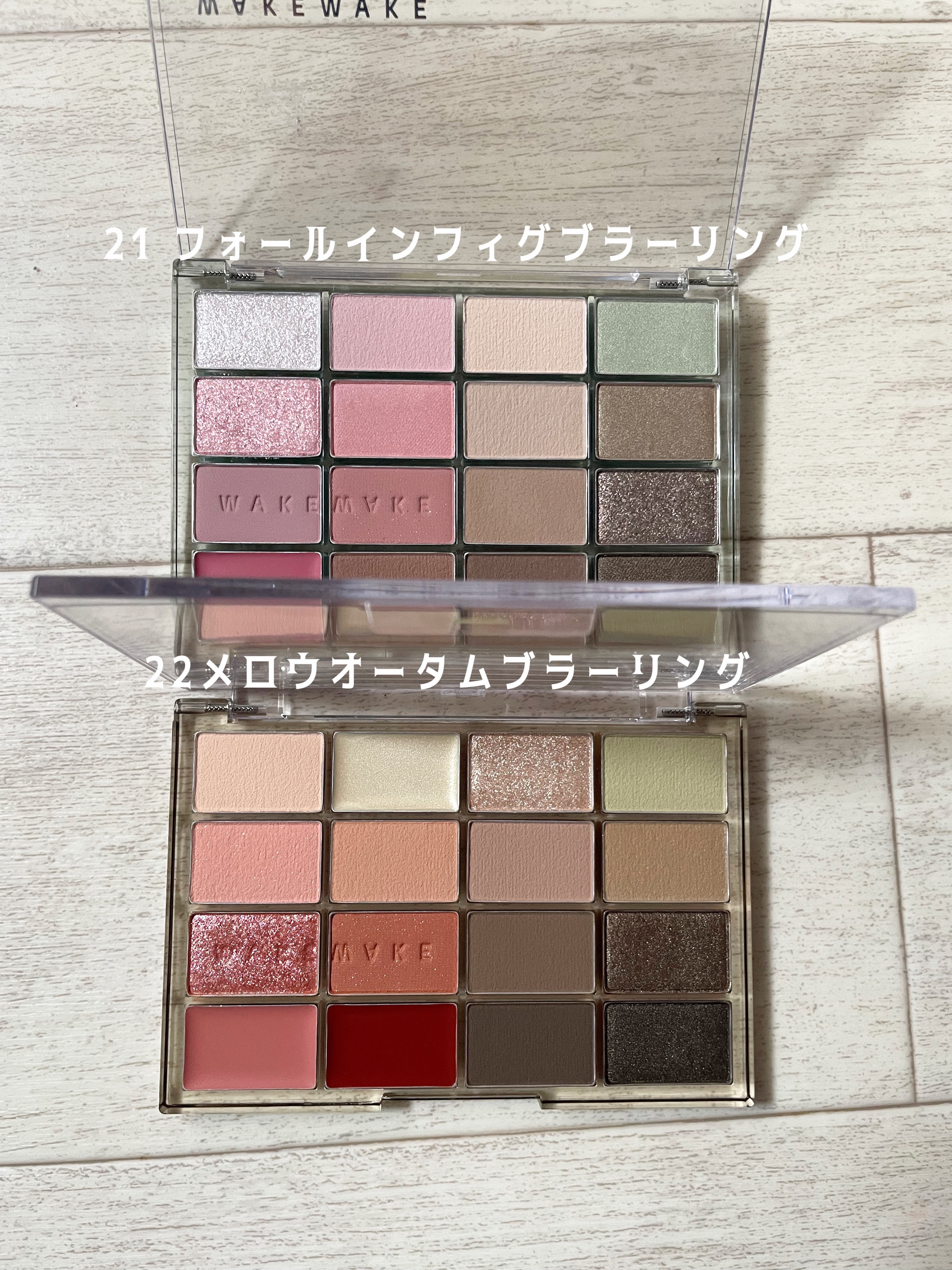 私も超絶愛用しているウェイクメイクの16色アイシャドウに秋新色が追加👏🏻 使いやすい暖色系×グリーン系の配色でおしゃれな秋色アイメイクができちゃいます🍃 この新色は今までとは違うバームタイプのカラーが入ってるからチークやリップにもマルチに使えるのが推し! ☞ 22 メロウオータムブラーリング イエベ秋向けの色が全部詰まったような ザ・イエベ秋おすすめなパレット…!