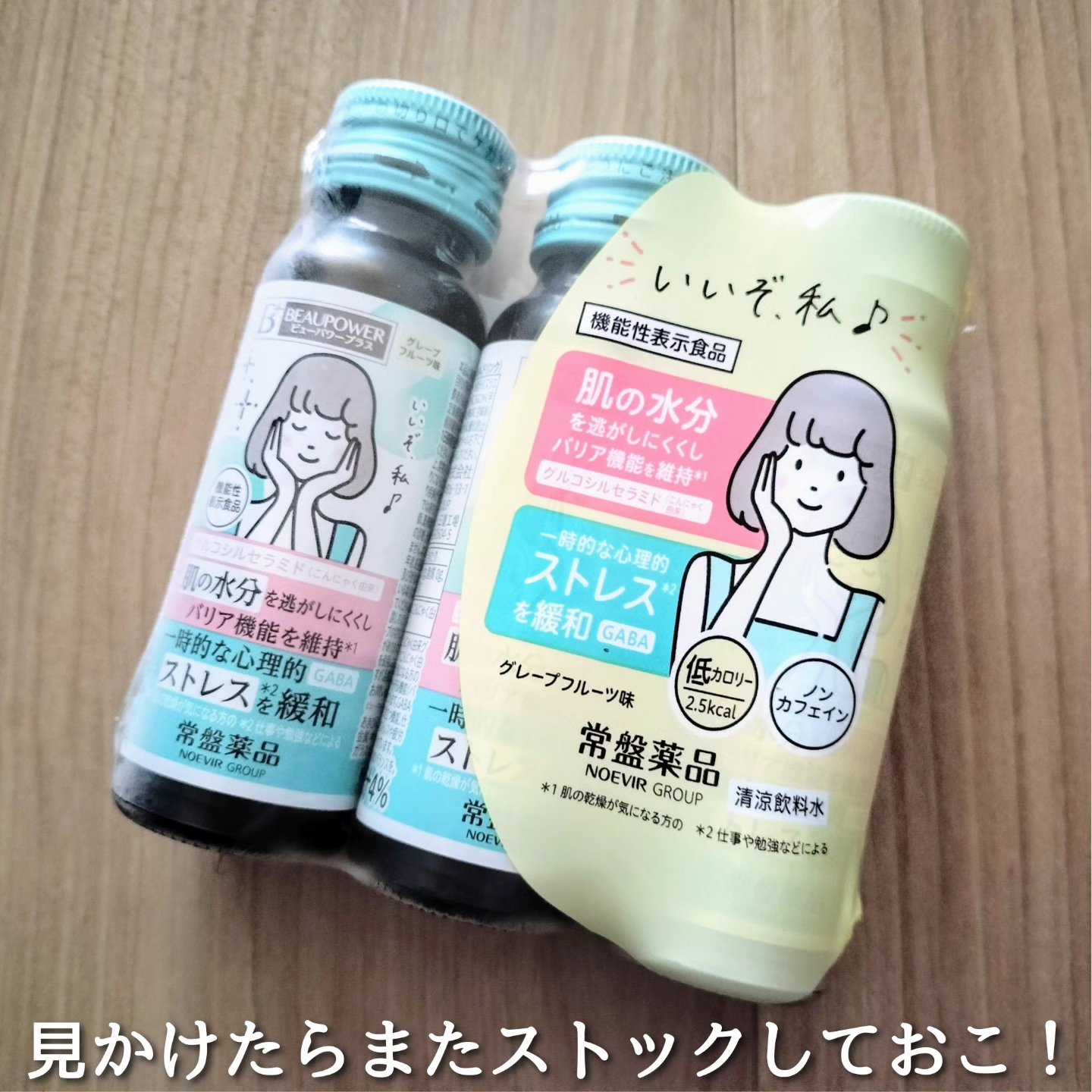 肌の乾燥が気になる方の肌の水分を逃がしにくくし、肌を乾燥から守る機能(バリア機能)を維持するこんにゃく由来グルコシルセラミド 睡眠の質(眠りの深さ)の向上に役立つ、仕事や勉強などによる一時的な心理的ストレスや疲労感を緩和するGABA お肌の潤いケアだけでなく、睡眠の質の向上をサポートなど、Wケアできるところがとても魅力的なドリンク✨