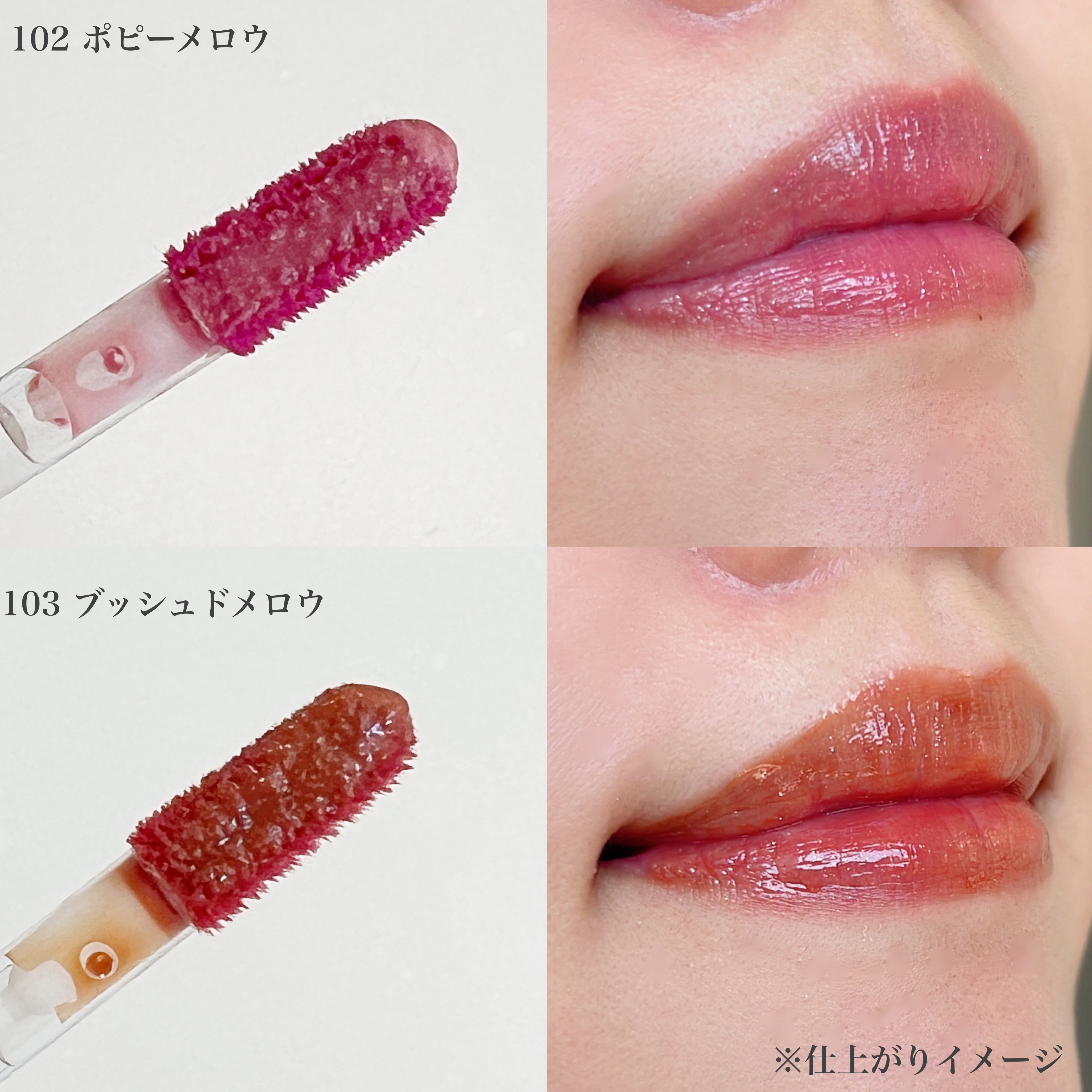- ぽっと染まった唇、ぎゅっとハグして離さない。つやつやジェル膜がつけたての色を守り、きれい発色つづくプランプ*リップ *メイク効果