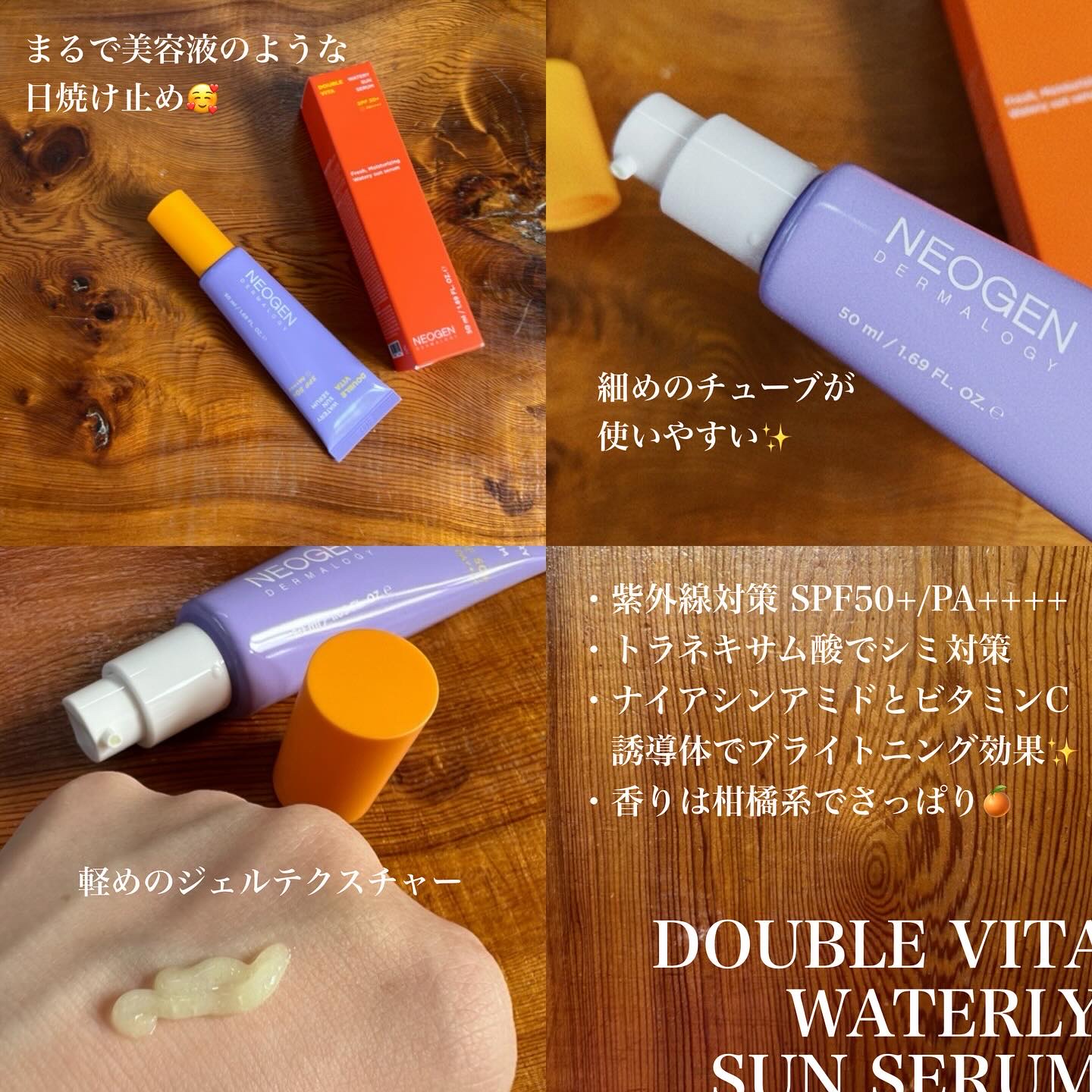 MOREMEさまを通じてNEOGENさまからいただきました。NEOGENダブルビダウォータリーサンセラムSPF50+PA++++✂セラムの核心部分をそのままに。・トラネキサム酸・ナイアシンアミド・ビタミンC誘導体▶︎UVケアと肌ケアを同時に!...